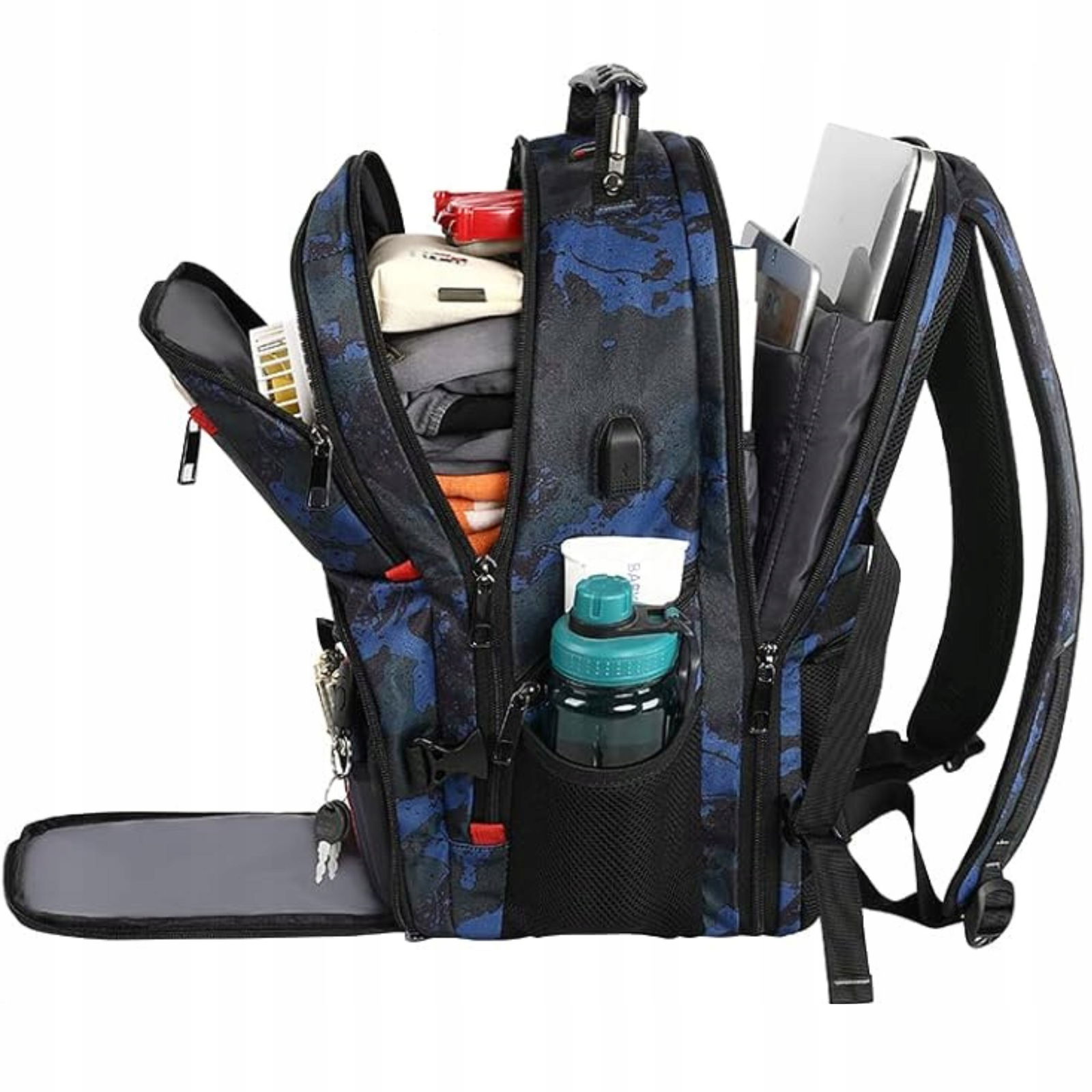 DUŻY PLECAK PODRÓŻNY TURYSTYCZNY DUŻO KIESZENI NA LAPTOPA PORT USB 45L