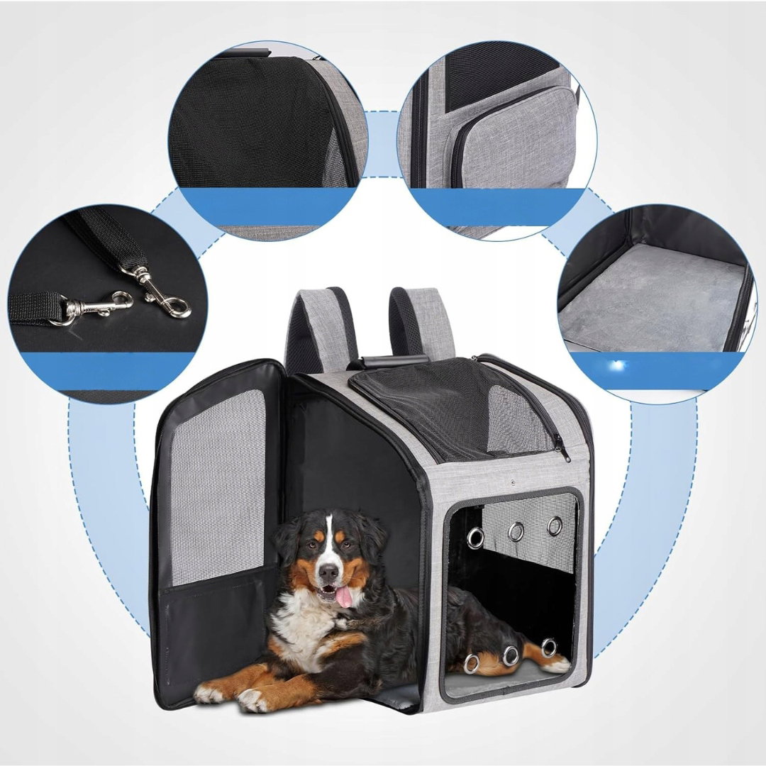 - Duża przestrzeń i wytrzymała konstrukcja: 53 × 32 × 40 cm, odpowiedni dla zwierząt do 15 kg, większy niż większość konkurencyjnych modeli na rynku. Wbudowana, wysokowytrzymała rama wzmacnia plecak i zapobiega jego odkształcaniu lub zapadaniu się.