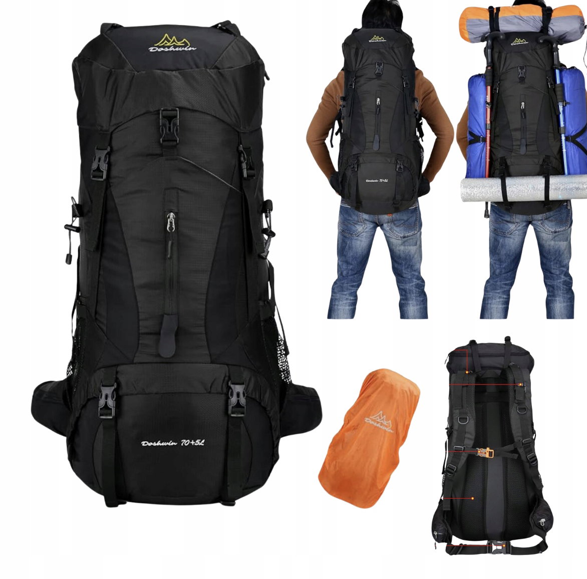 Duży plecak turystyczny Doshwin 70+5 L wykonany z nylonu czarny unisex