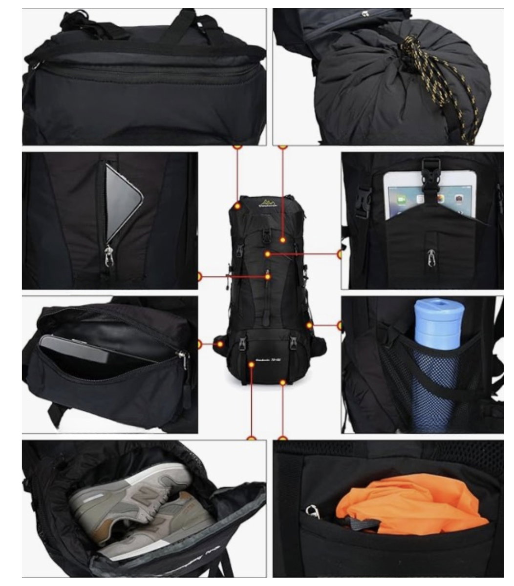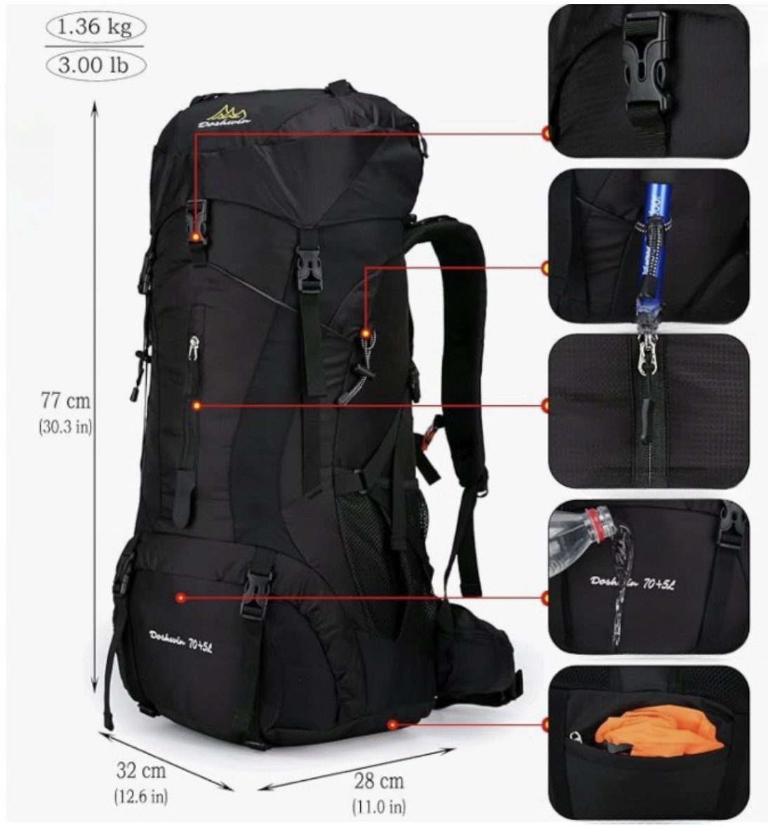 ✅ Duża pojemność: Plecak o pojemności 70+5 litrów pomieści wszystkie niezbędne rzeczy na dłuższe wyprawy, trekking czy kemping.