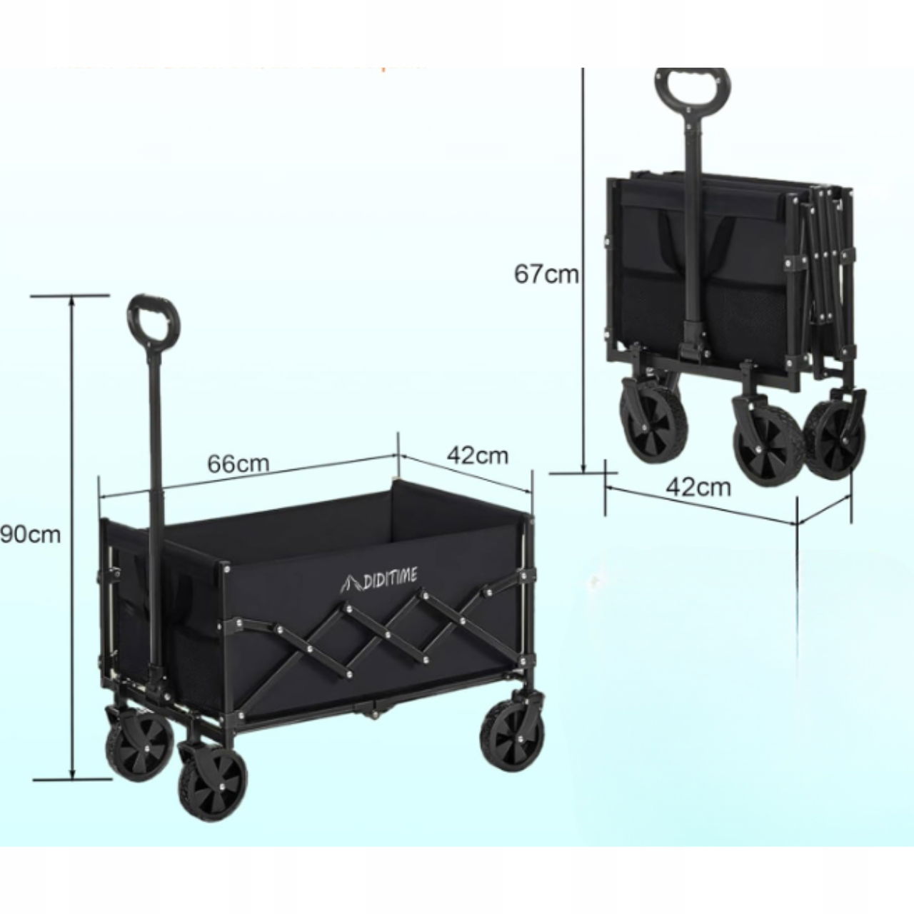 ✅ Składany design – wózek rozkłada się do 91 × 66 × 42 cm, po złożeniu zajmuje tylko 69 × 42 × 15 cm