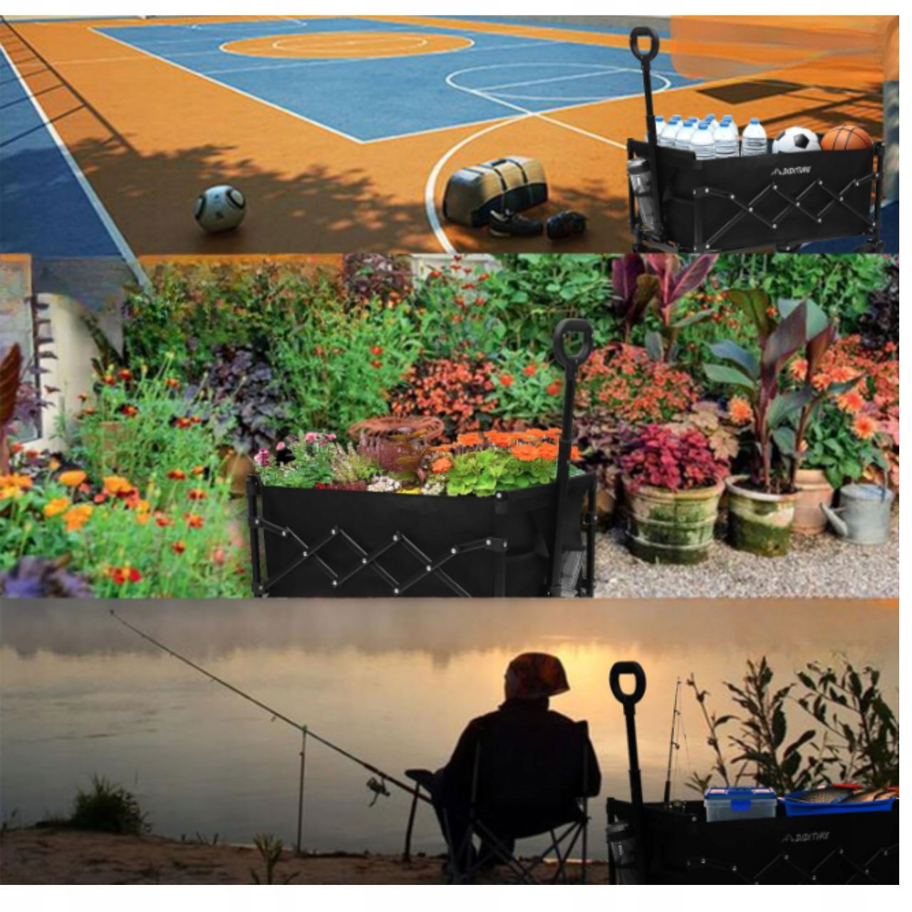 Praktyczny i kompaktowy składany wózek ręczny z uchwytem typu D to idealne rozwiązanie do transportu zakupów, sprzętów i bagaży. Rozkładany do wymiarów 91 × 66 × 42 cm, a po złożeniu zmieści się w samochodzie lub schowku (69 × 42 × 15 cm). Wyposażony w dwie boczne kieszenie z siatki na napoje, wygodny uchwyt i solidną konstrukcję — świetny do domu, ogrodu, na plażę, zakupy czy wyjazdy.