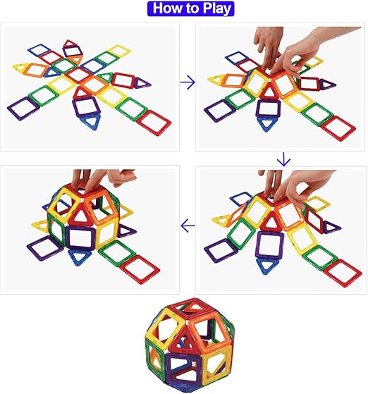 - Kreatywność - Zrób to sam, łącząc klocki magnetyczne z różnymi układami, aby poprawić kreatywność i wyobraźnię twoich dzieci.