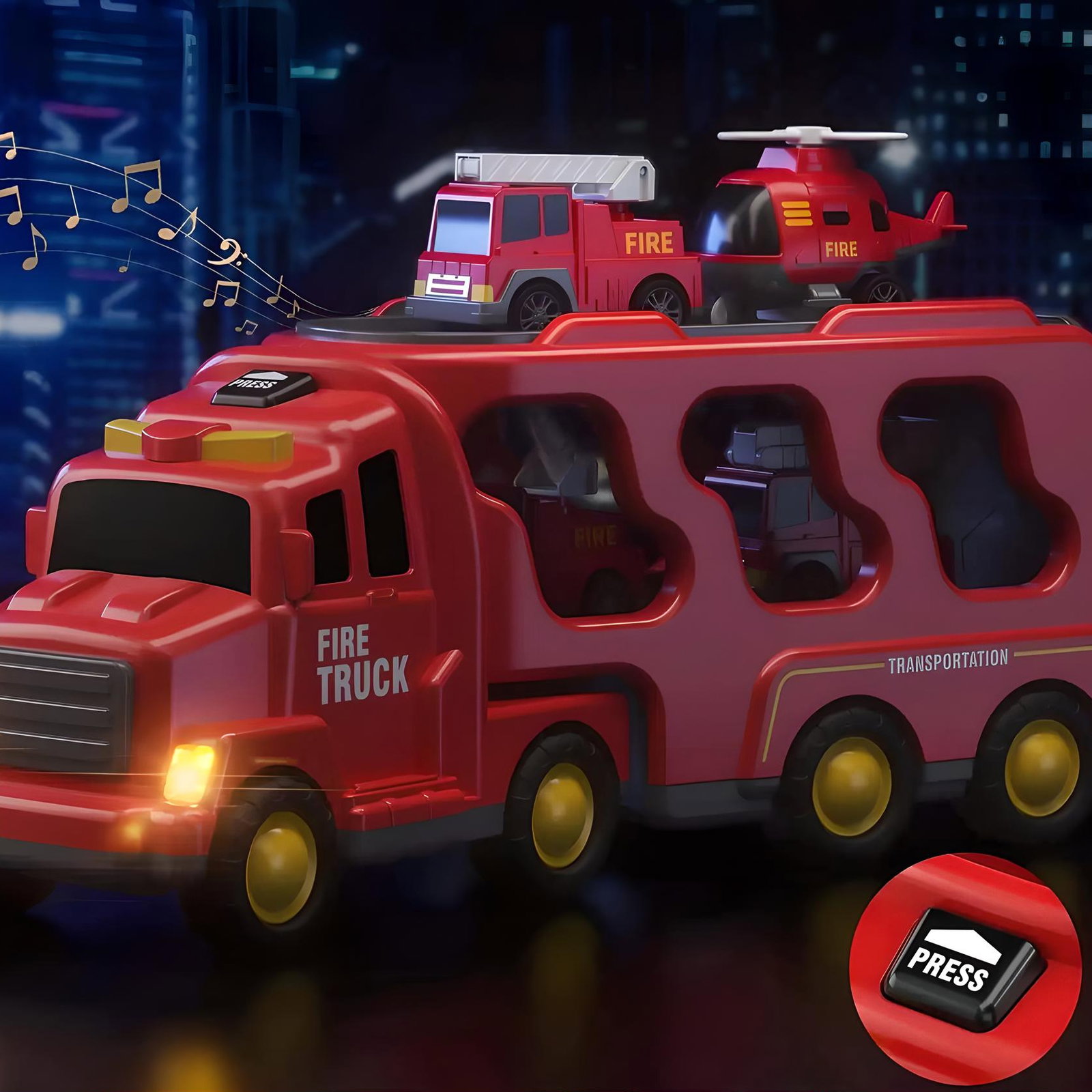 ✅Światła i efekty dźwiękowe - naciśnij przycisk na górze kabiny, a zobaczysz jasne migające światła i usłyszysz realistyczne syreny, bardzo atrakcyjne dla dzieci.