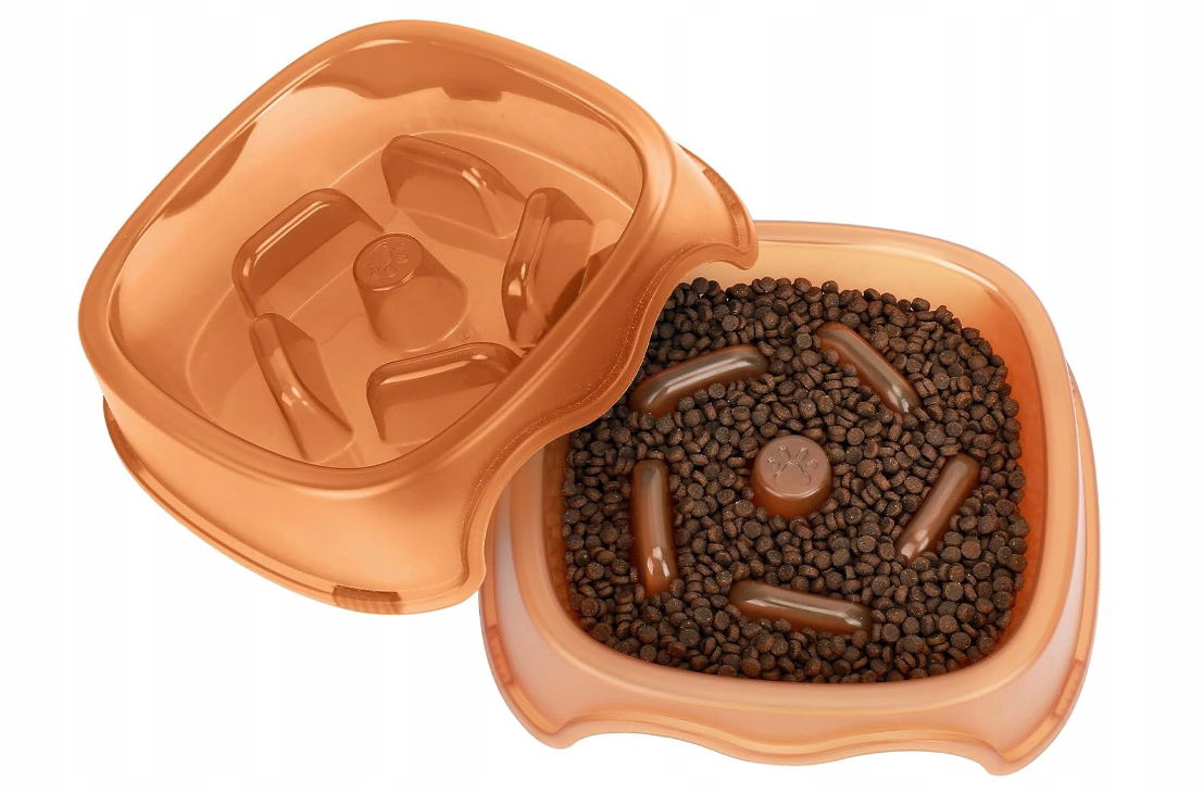 - Spowalnianie jedzenia: Specjalny design misek z wypustkami i labiryntem wewnątrz sprawia, że zwierzak musi się bardziej postarać, aby zjeść pokarm, co skutecznie spowalnia tempo jedzenia.