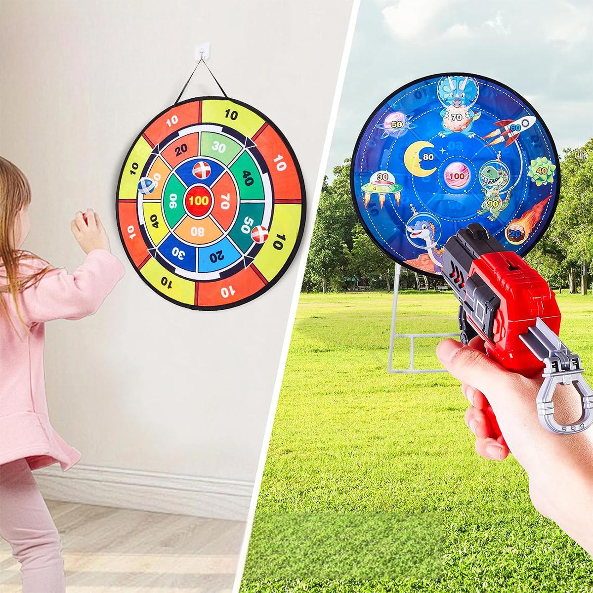To świetny sposób na rozwijanie koordynacji ruchowej, celności, motoryki małej i dużej oraz zdrową, aktywną zabawę bez ekranów. Tarcza jest łatwa do montażu i przechowywania — można ją powiesić, ustawić na ścianie lub używać na zewnątrz.