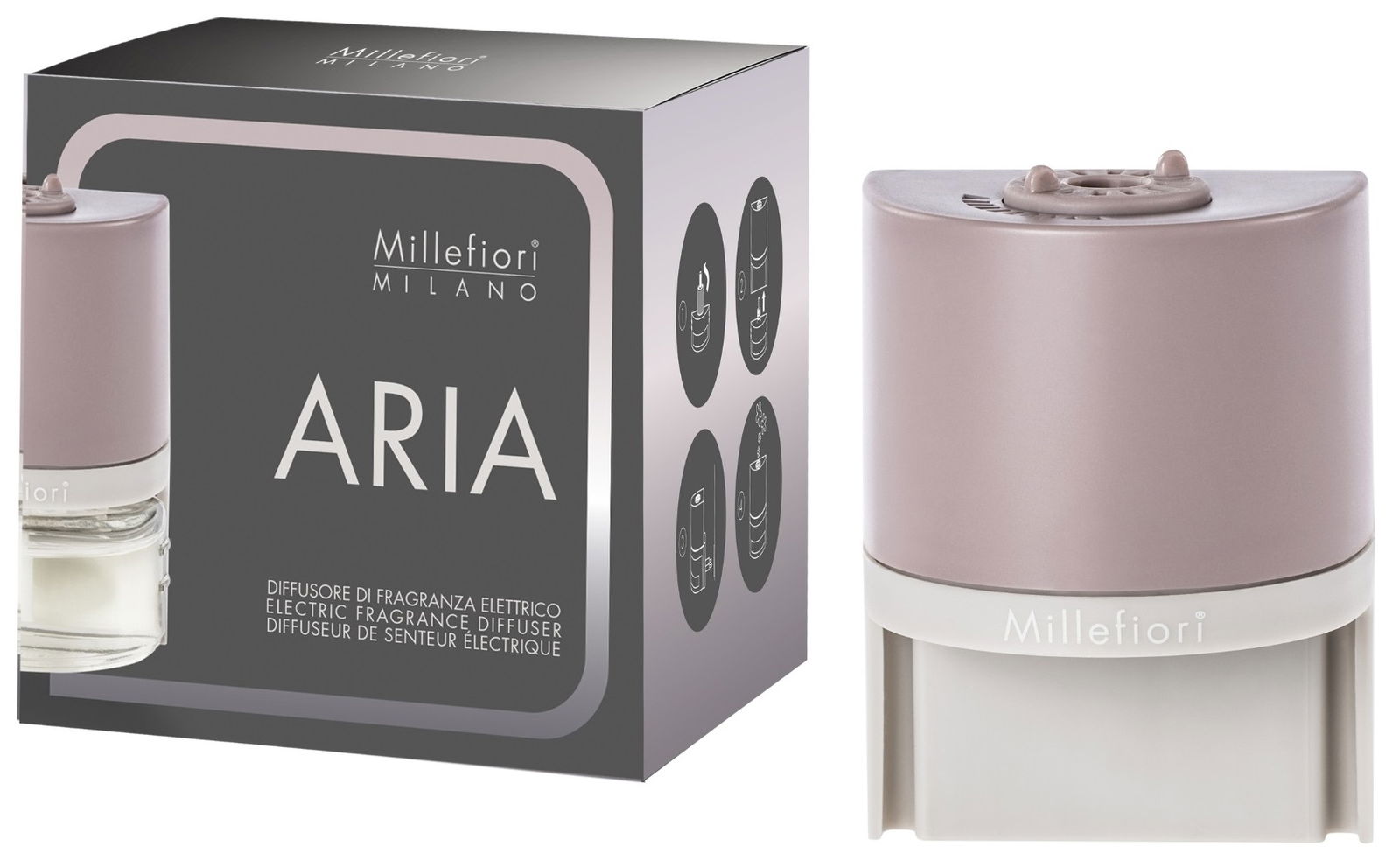 Elektryczny dyfuzor - baza ARIA marki Millefiori MILANO. Nowoczesny odświeżacz zapachowy z regulacją intensywności, do zastosowania w gniazdku elektrycznym. Rozprowadza nie tylko piękne aromaty, ale jest również stylowym elementem dekoracyjnym.