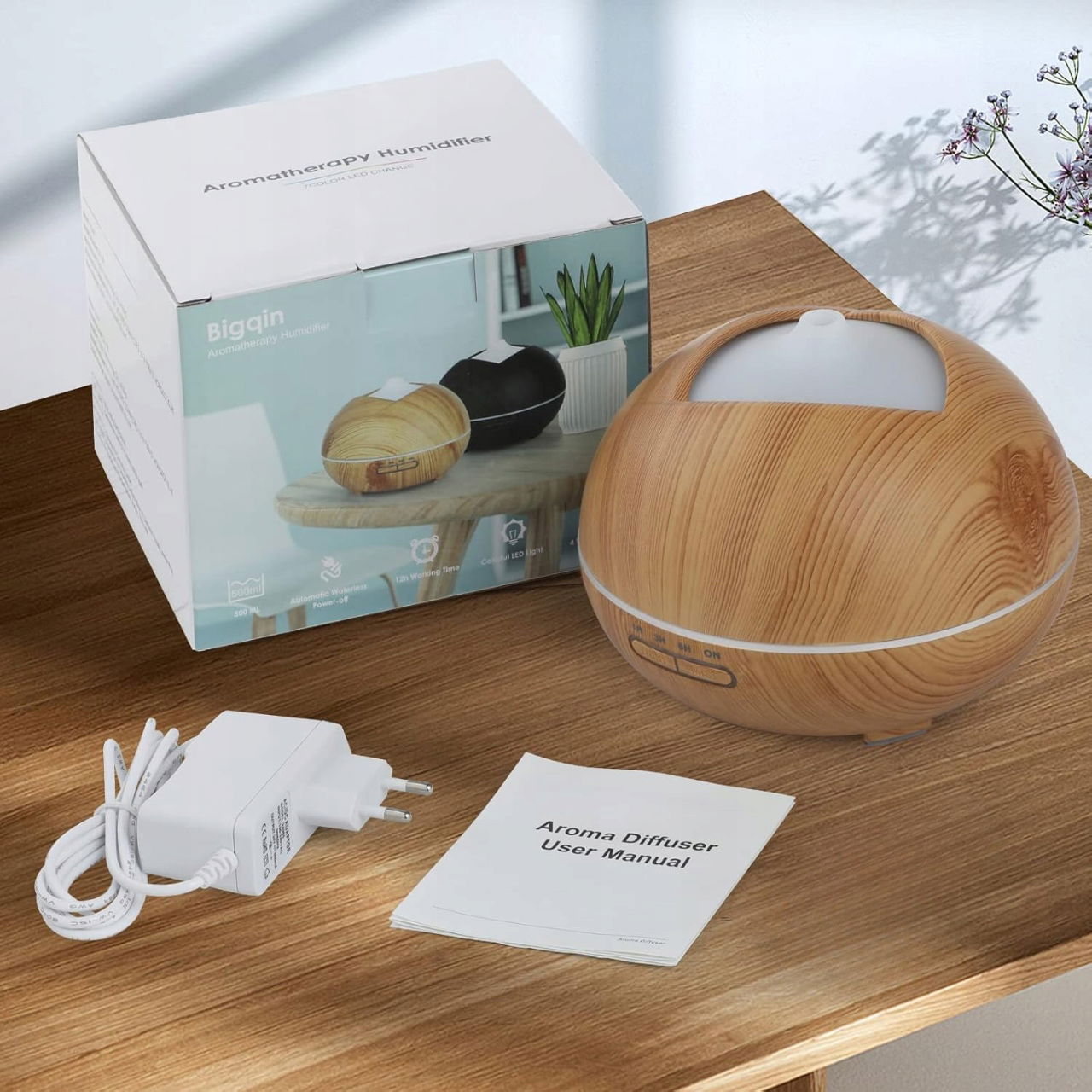 Dyfuzor olejków eterycznych Bigqin 500 ml do aromaterapii jasne drewno