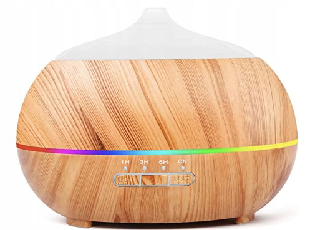 Dyfuzor zapachowy do olejków eterycznych: dyfuzor z rysunkiem słojów drewna działa do 6 do 10 godzin, 3 timery (1 h / 3 h / 6 h) i w sposób ciągły. 2 regulowane tryby mgiełki. Dyfuzor zapachowy ma zbiornik na wodę o pojemności 400 ml, a jego pokrywę można łatwo usunąć, dzięki czemu można dodać wodę lub olejki eteryczne. Łatwy do czyszczenia.