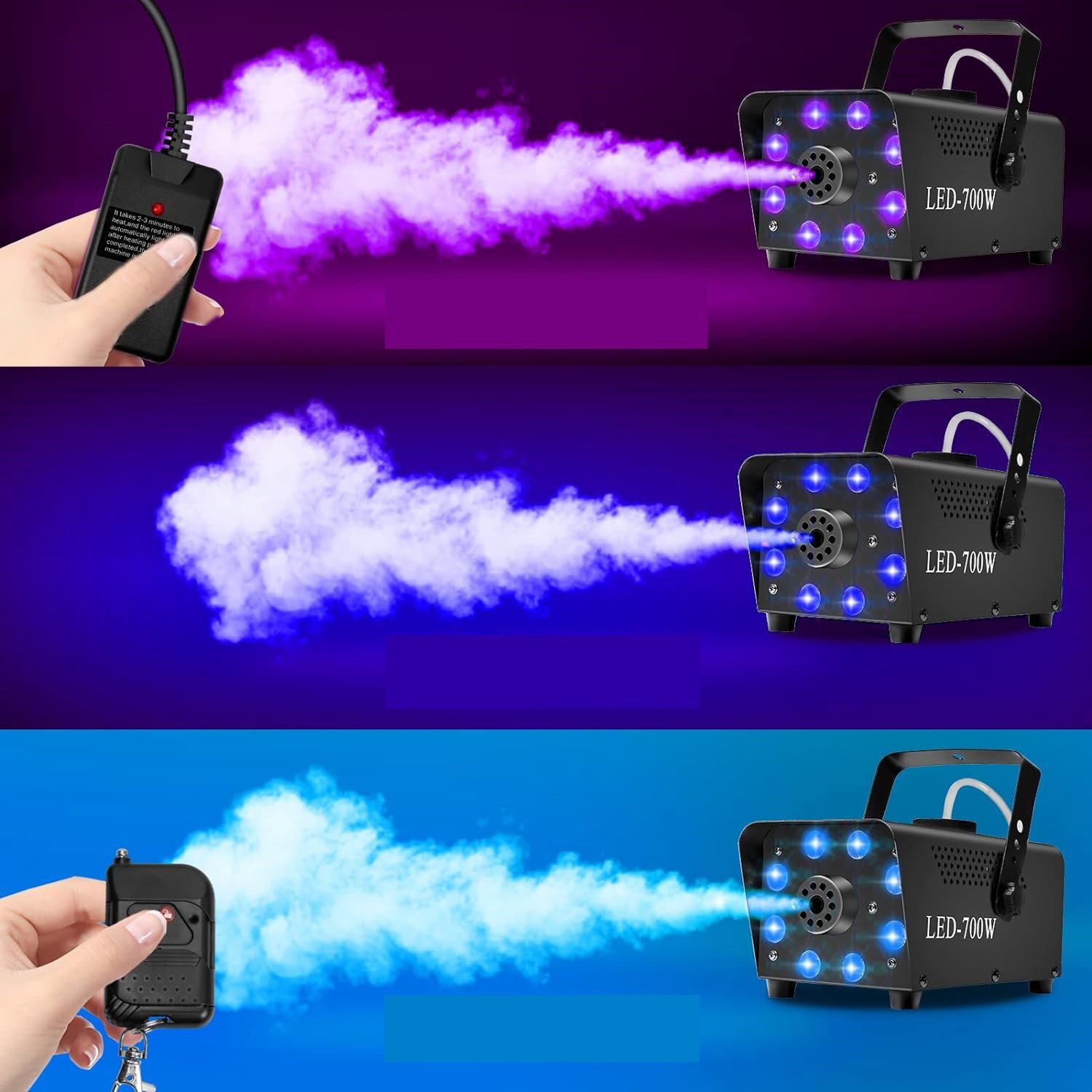 Katomi maszyna do dymu z efektem RGB, 700 W, 13 kolorów, 8 diod LED, mini wytwornica dymu z 2 przewodowymi i radiowymi pilotami, na imprezę dyskotekową, Halloween, wesela