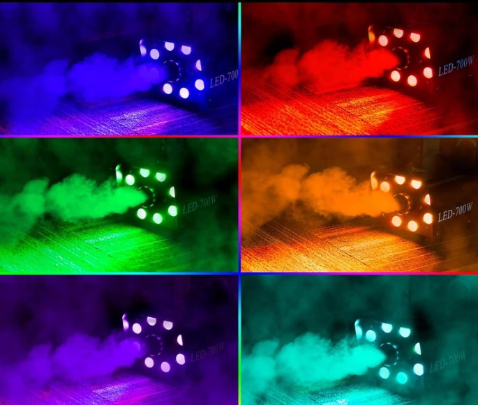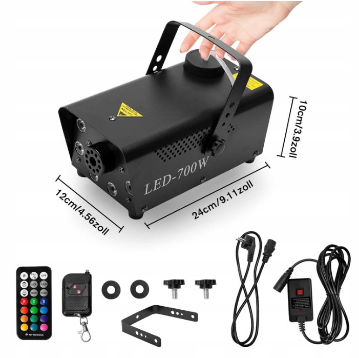 DYMIARKA MASZYNA DO ROBIENIA DYMU WYTWORNICA KATOMI 700W EFEKT RGB ŚWIATŁA