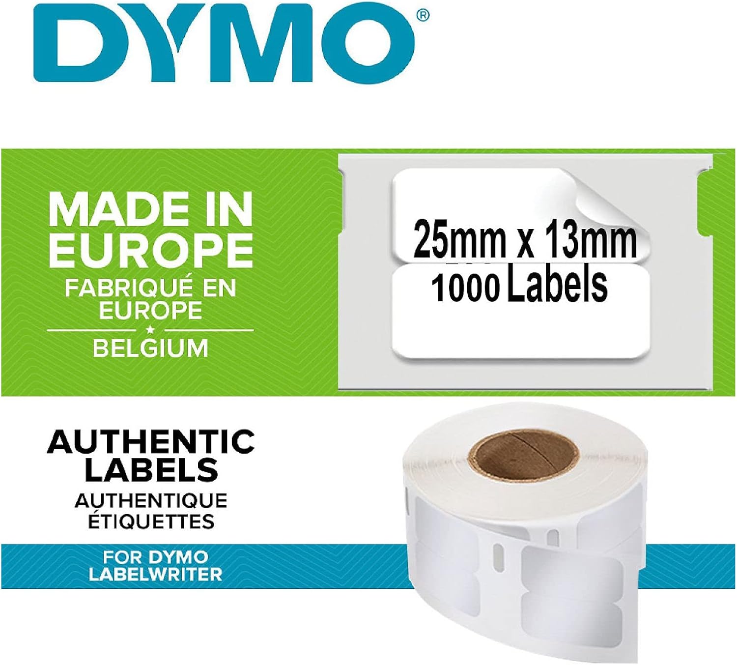 DYMO Oryginalne etykiety uniwersalne LabelWriter (małe) | 13 mm x 25 mm | rolka z 1000 łatwymi do odklejenia etykietami | samoprzylepne | do drukarek etykiet i urządzeń do etykiet LabelWriter