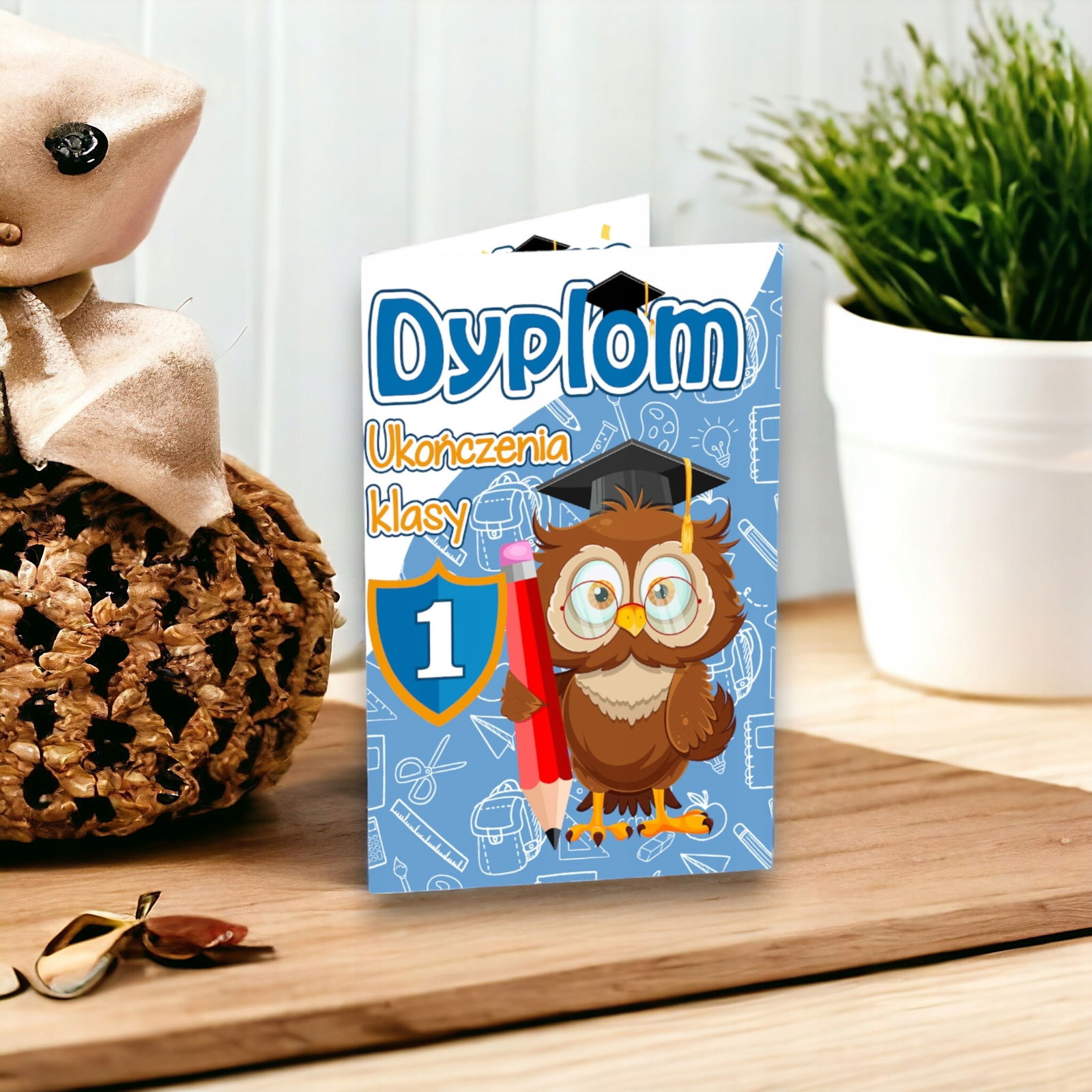 Dyplom składany ukończenia klasy 1 SOWA duży a5 ZAKOŃCZENIE ROKU