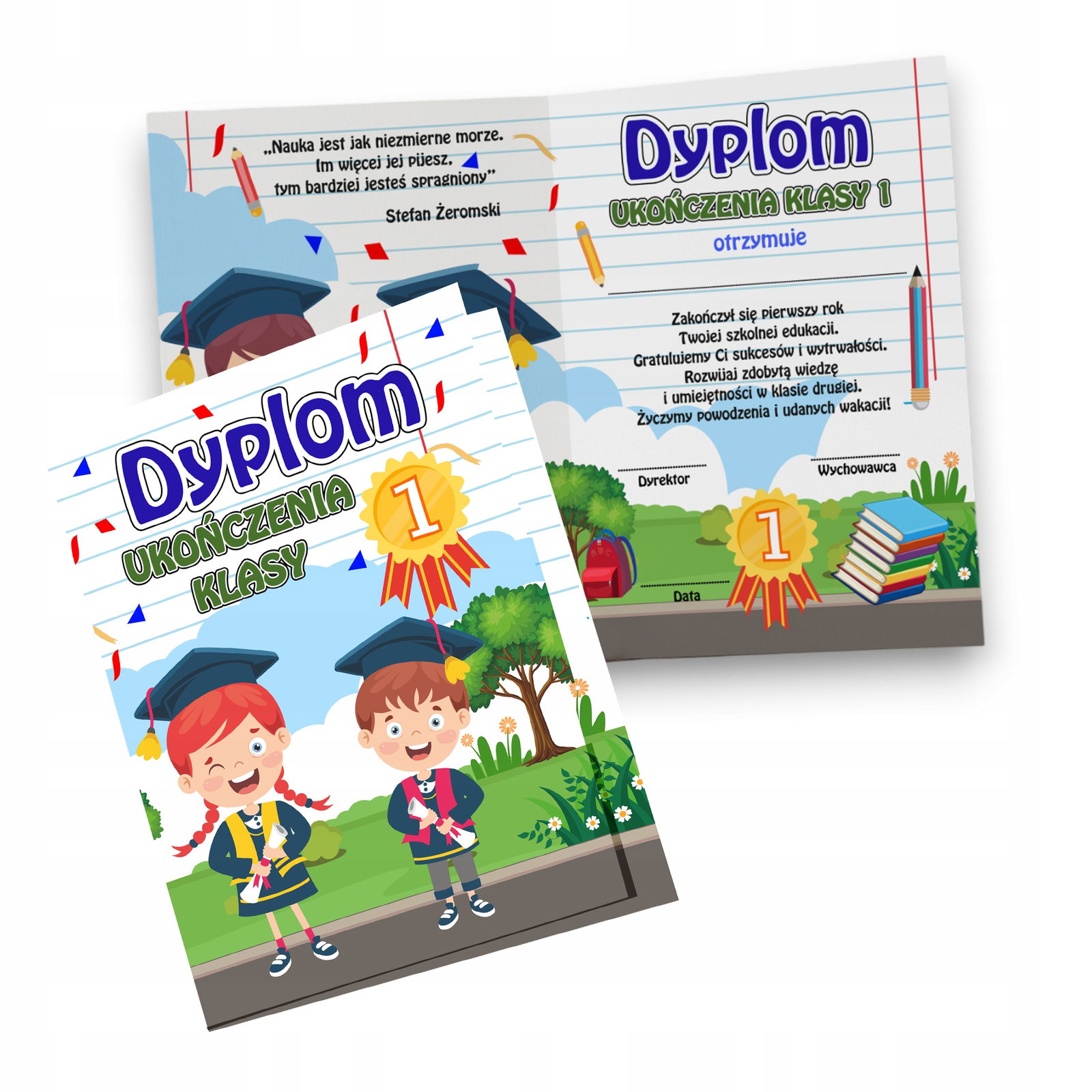 • zadrukowany dwustronnie w formie składanej książeczki będzie idealnym upominkiem dla dziecka z okazji Zakończenia Roku.