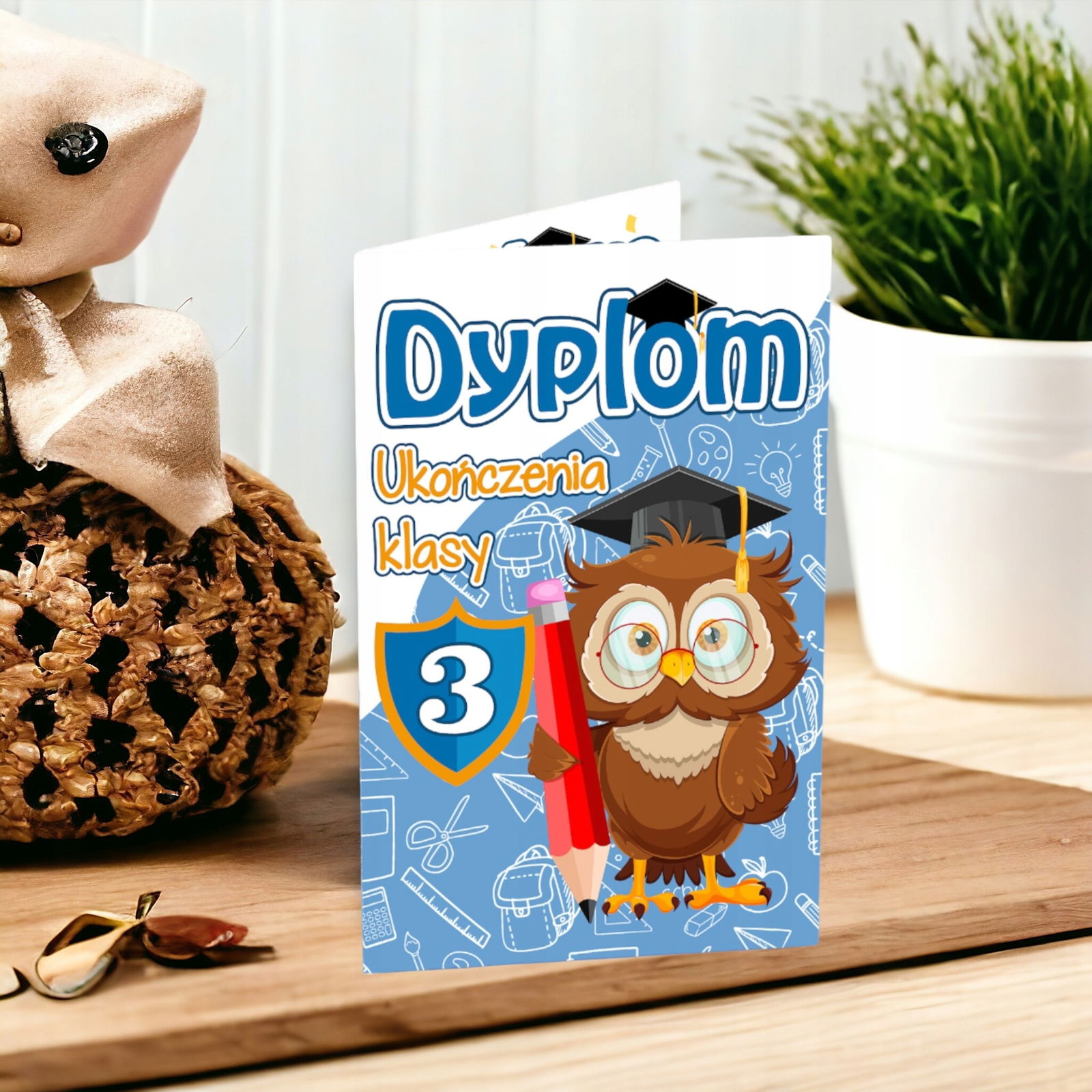 Dyplom składany ukończenia klasy 3 SOWA duży a5 ZAKOŃCZENIE ROKU DYP1