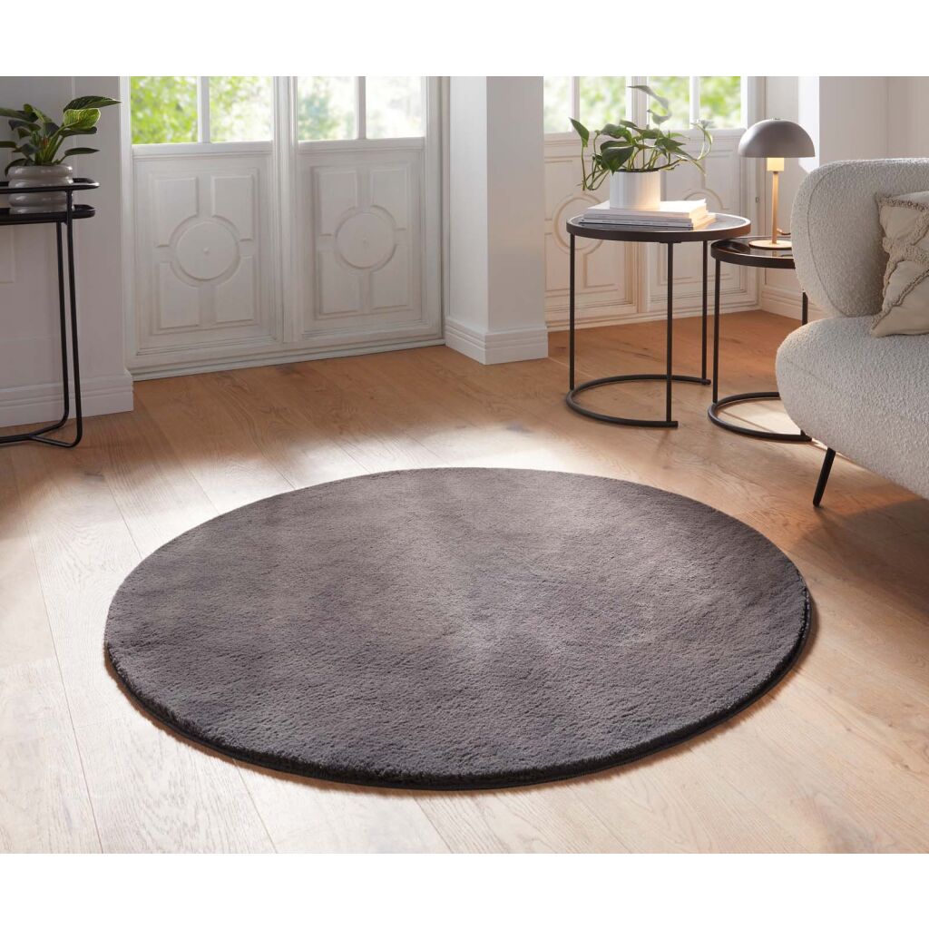 Dywan Fiona Supermiękki, Okrągły, antracyt 80 cm nadający się dla alergików