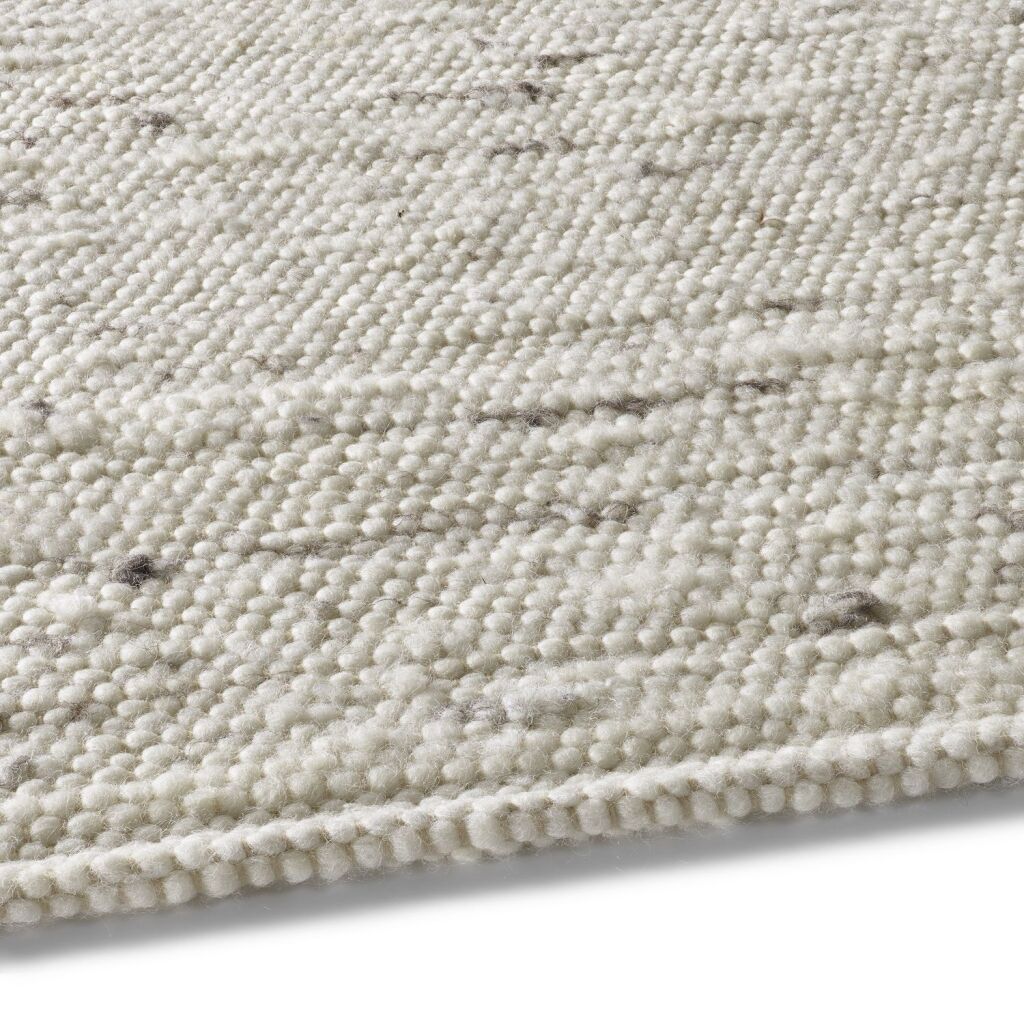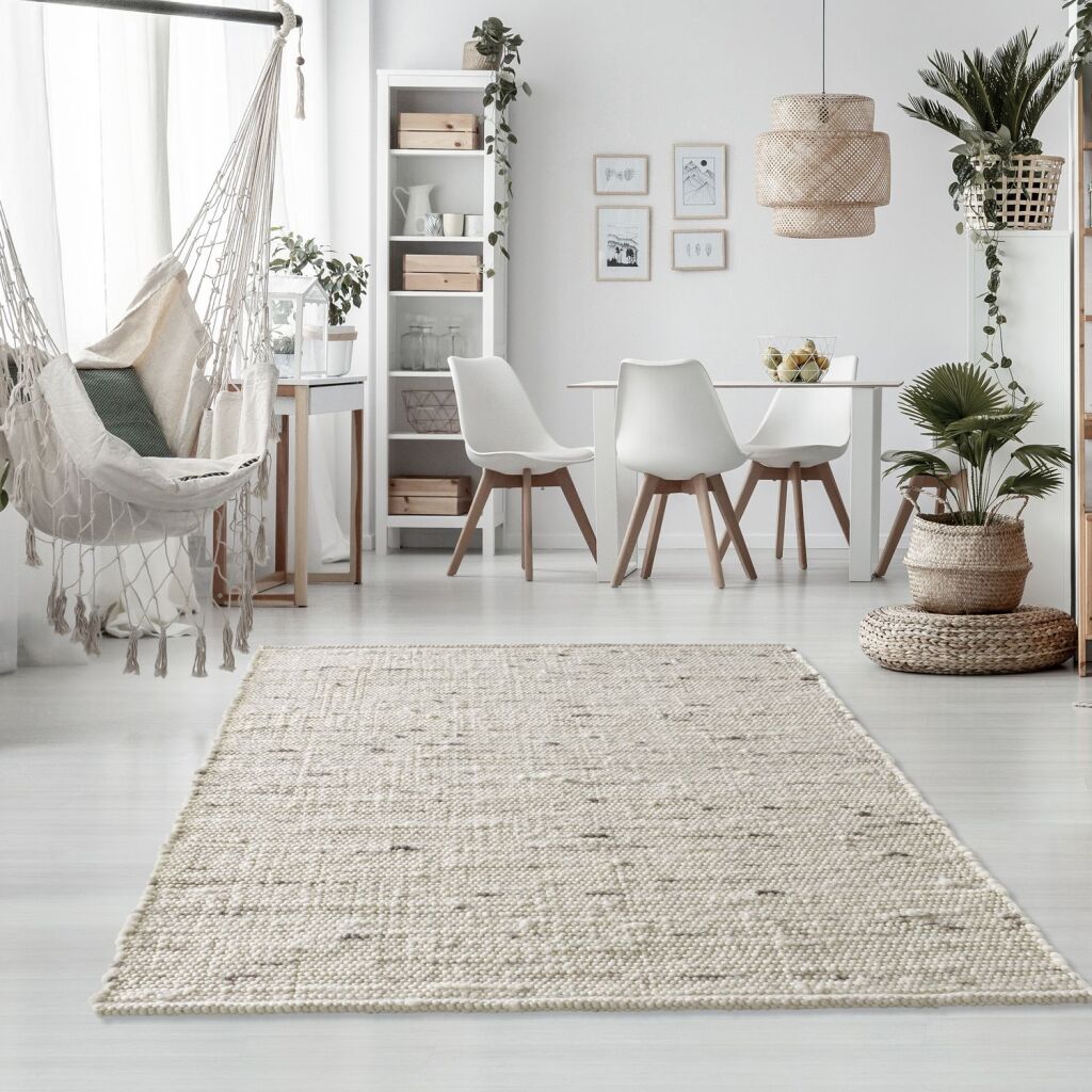Ręcznie tkany dywan wełniany Oslo uni mottled sand multi 185 wykonany w 100% z dziewiczej wełny w skandynawskim projekcie domu wiejskiego