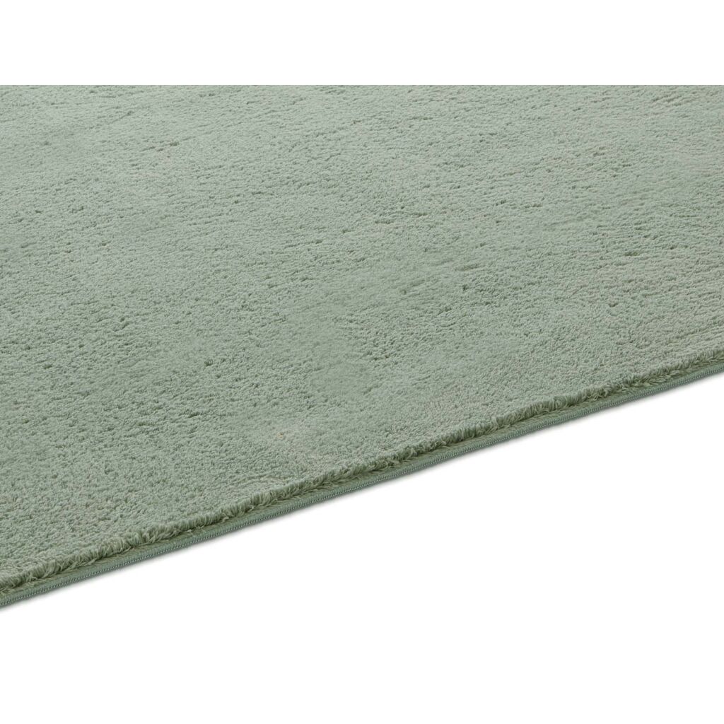 Tkany dywan o krótkim stosie Fiona w przyjemnie miękkiej supermiękkiej jakości poliestru, którą można prać w 30 stopniach w kolorze miętowym