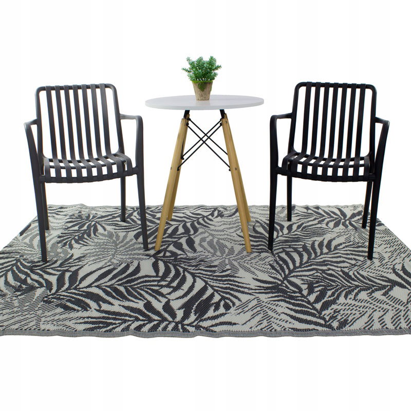 Dywan zewnętrzny BALKON taras 160x220 DUŻY czarny LIŚCIE tarasowy ODPORNY