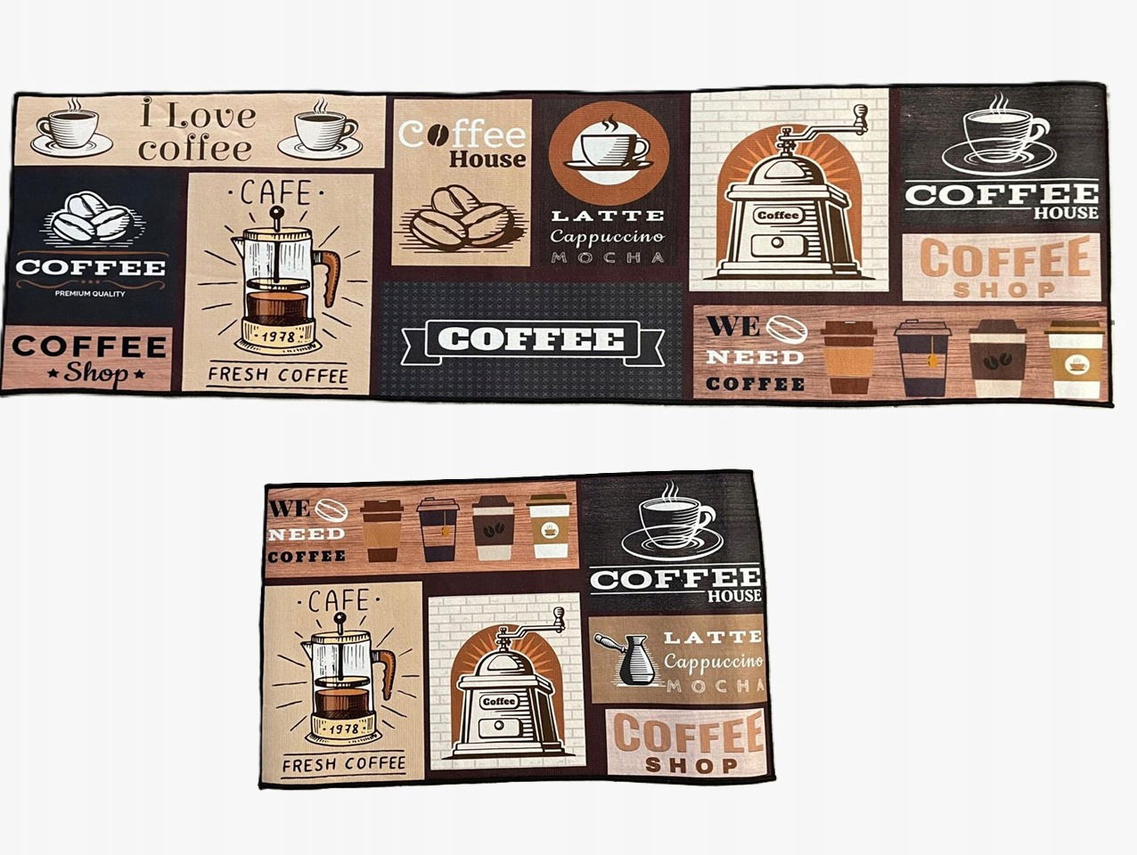 Zestaw 2 dekoracyjnych dywaników w modnym stylu kawowym to praktyczne i estetyczne rozwiązanie do każdego wnętrza. Antypoślizgowe wykończenie sprawia, że dywaniki stabilnie trzymają się podłogi, a miękka powierzchnia zapewnia komfort użytkowania.