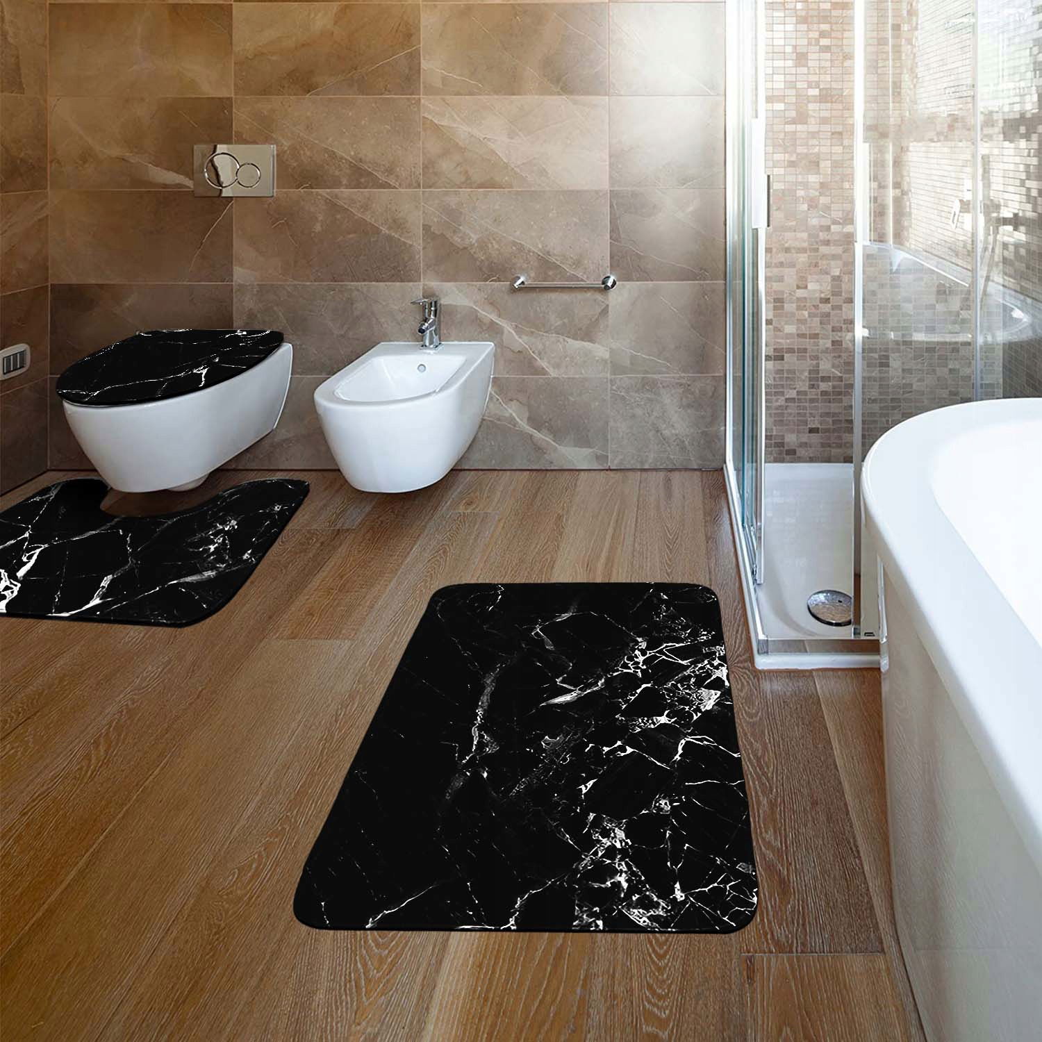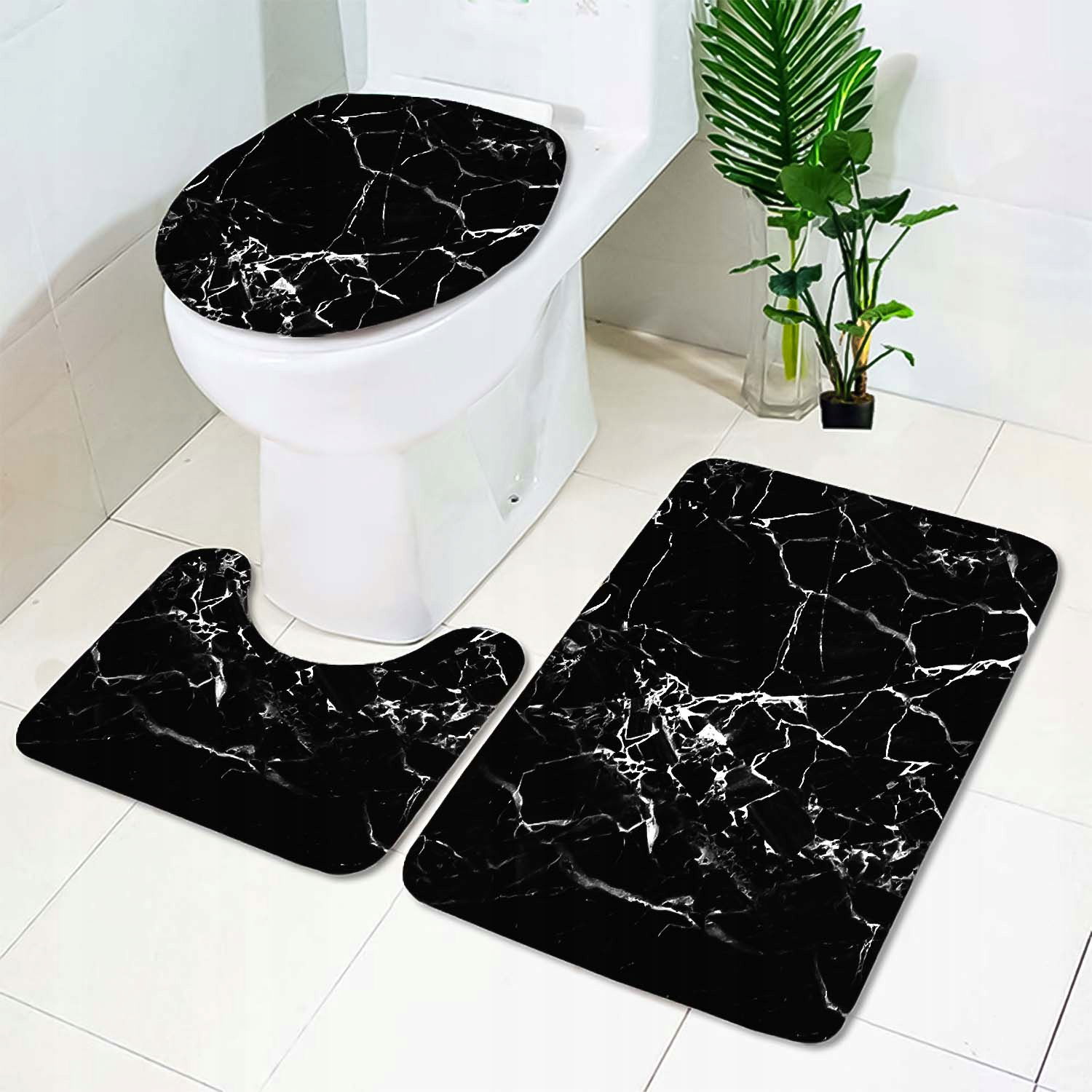 Dywaniki Łazienkowe Komplet 3 Częściowe Antypoślizgowy Czarny Zestaw 3w1