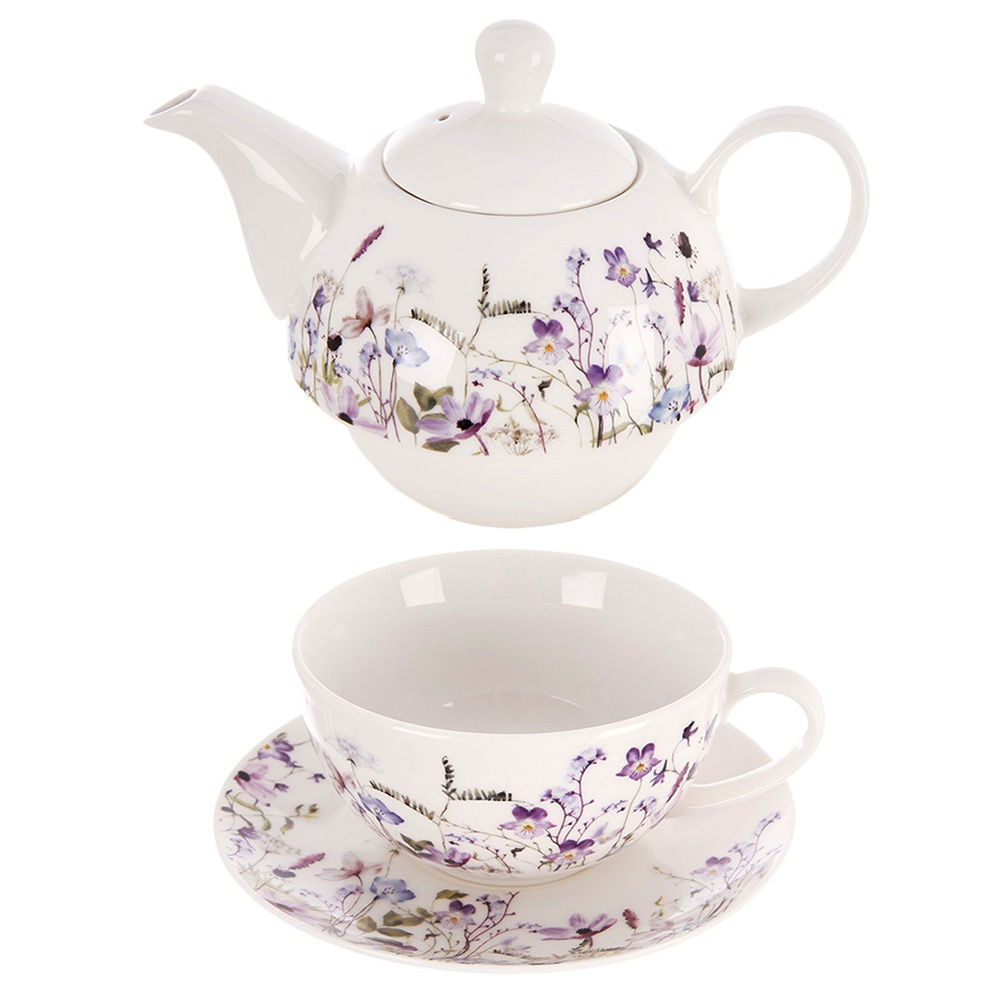 Zestaw do zaparzania herbaty - Zestaw 2w1 składający z dzbanka do zaparzania herbaty oraz filiżanki ze spodkiem. W zestawie: dzbanek o pojemności 400 ml (wymiary: 16,5 x 11 x 11,5 cm), filiżanka o pojemności 280 ml (wymiary: 13,5 x 11 x 5,5 cm) oraz spodek o wymiarach 15 x 2 cm. Zestaw z serii Louka.