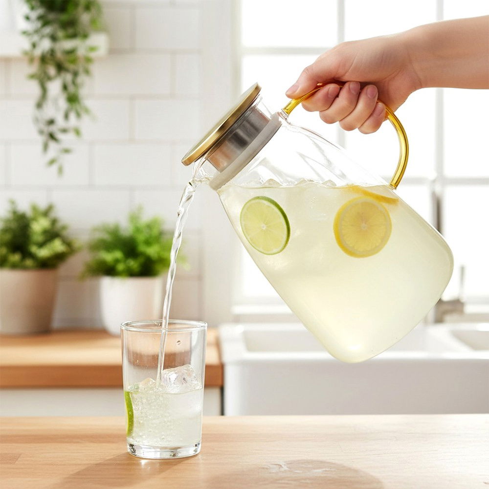 Uniwersalne zastosowanie - Dzbanek idealnie sprawdzi się do serwowania wody, soków, lemoniady, herbaty mrożonej, kompotu itp. Idealny podczas rodzinnych posiłków, pikniku na działce lub w trakcie imprez ze znajomymi. Dzbanek jest wąski, więc swoim kształtem pasuje do drzwi lodówki. Nadaje się do mycia w zmywarce do naczyń.