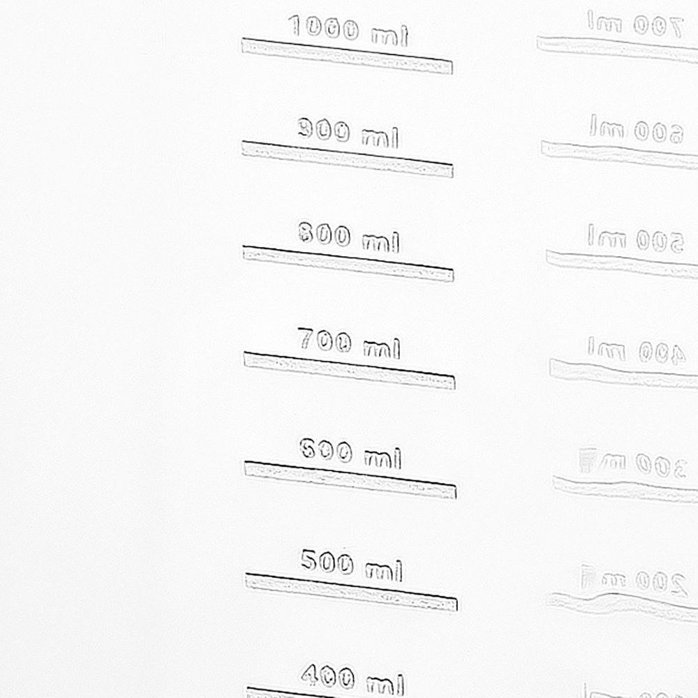 WYGODNY - Posiada wygodny uchwyt wykonany z tworzywa w kolorze białym. Dzięki uchwytowi w łatwy sposób przeniesiemy dzbanek oraz nalejemy napój. Dzbanek posiada miarkę od 100 do 1000 ml, która umożliwi odmierzenie odpowiedniej ilości płynów.