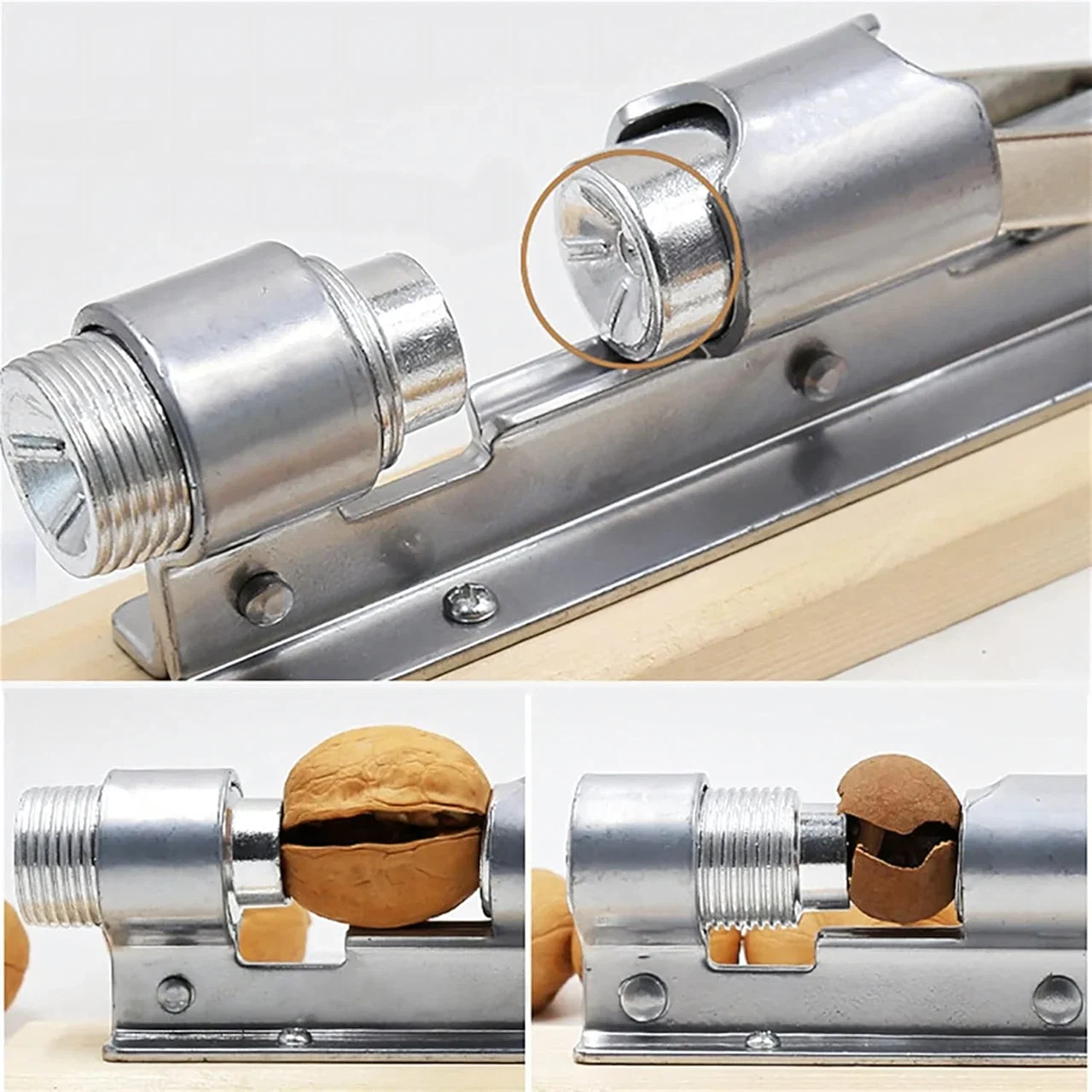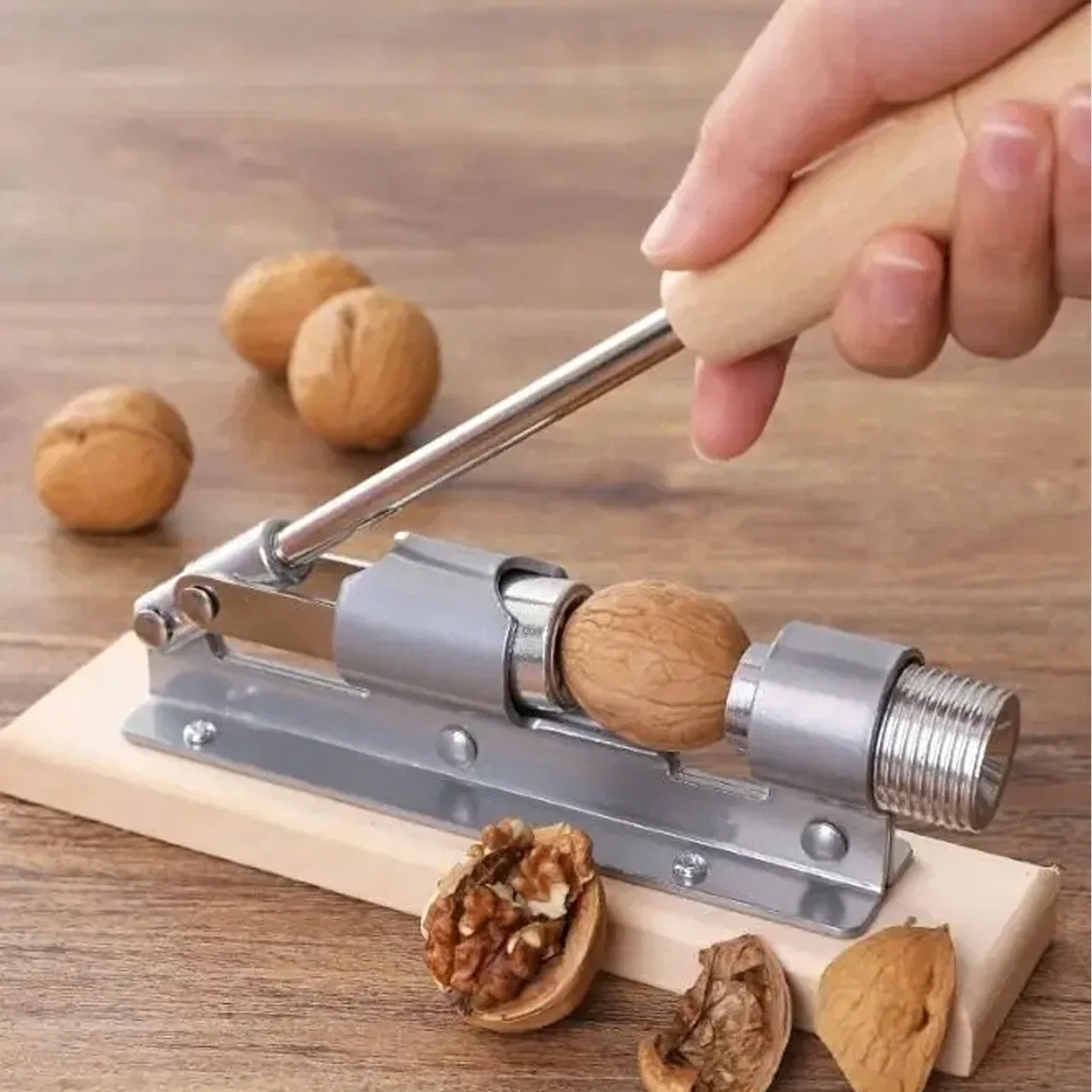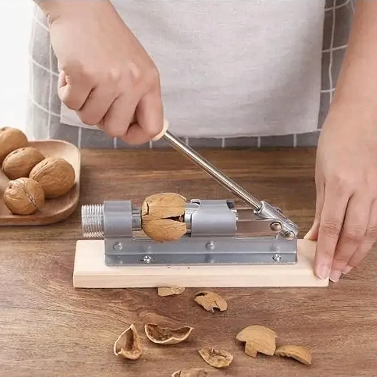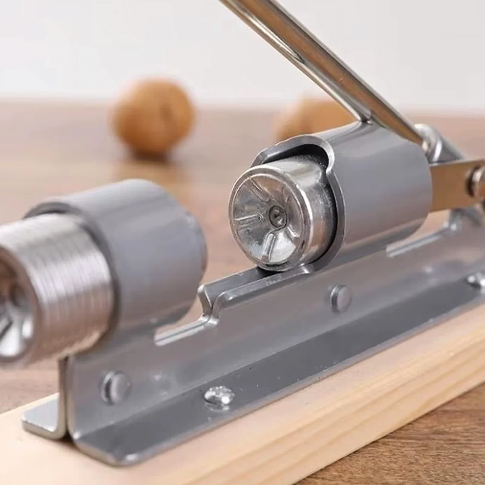 Dziadek do Orzechów Stalowy na Podstawie Drewnianej Zgniatarka Łuparka
