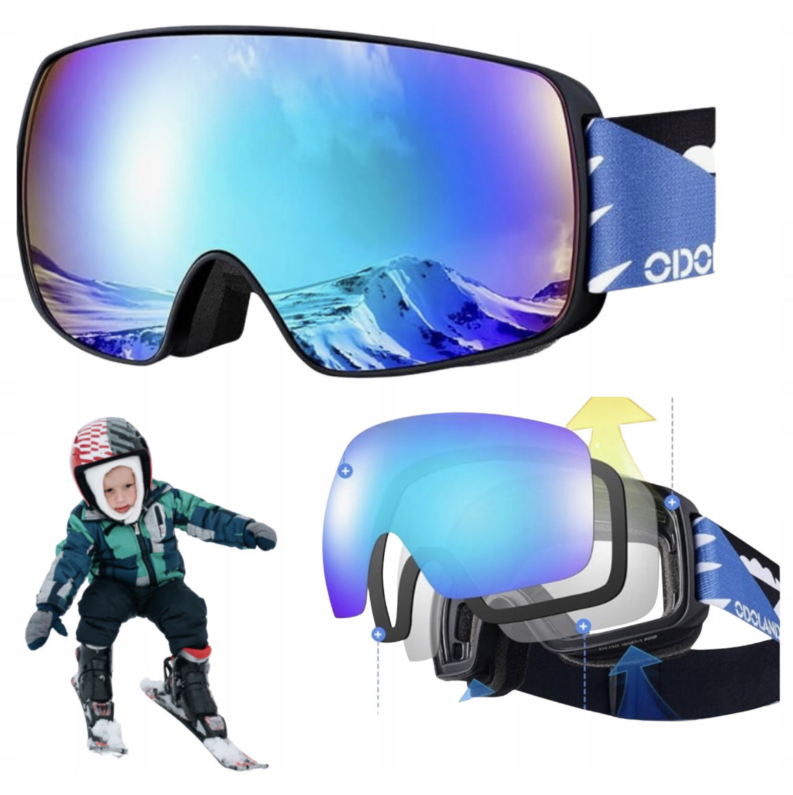 Dziecięce Gogle Narciarskie UV400 Przeciwmgielne niebieskie Odoland