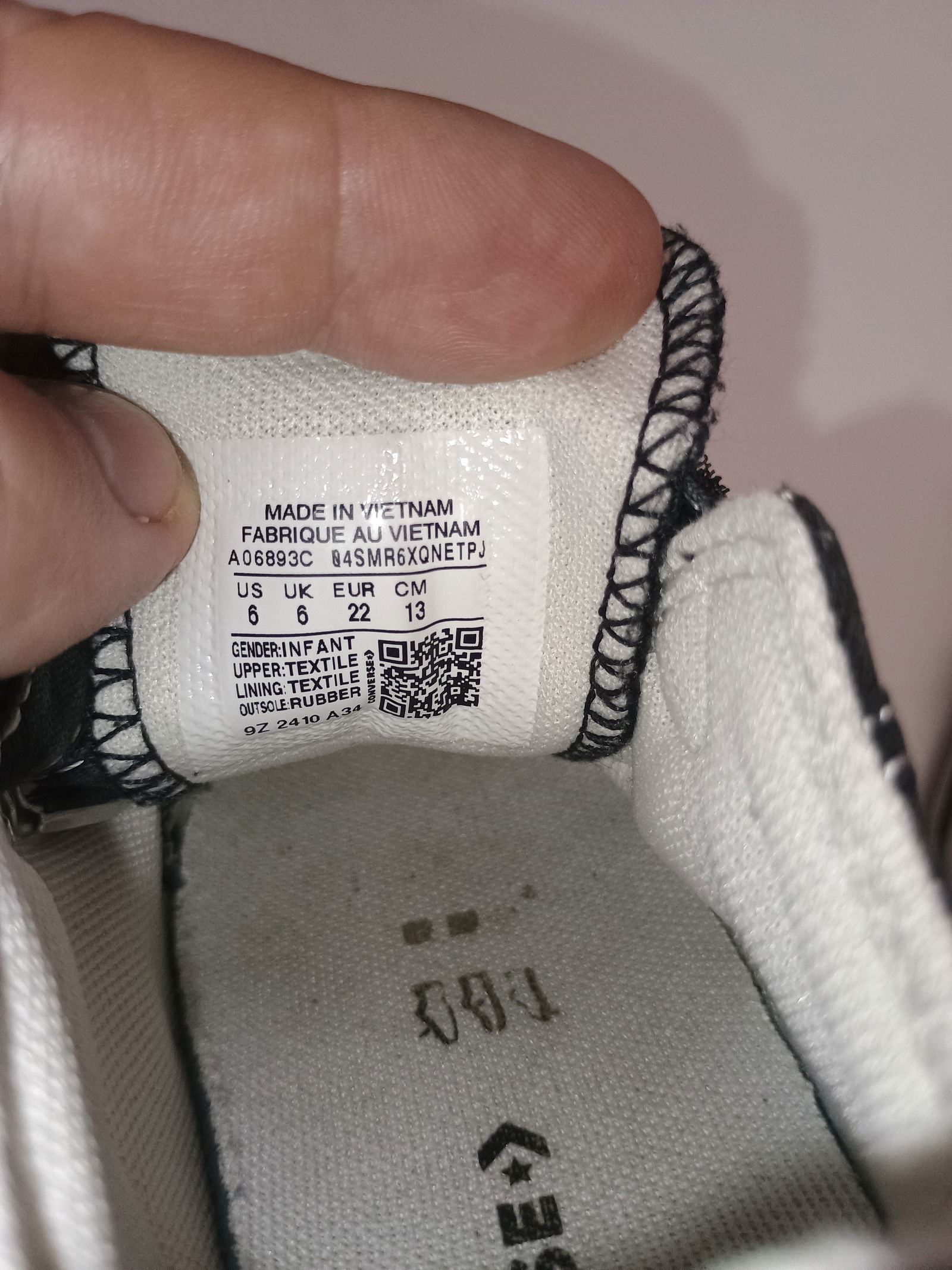 📏 Rozmiar: 22.0 📏 Długość wkładki: 13.0 cm ✅ Marka: Converse ✅ Obuwie 100% oryginalne ✔ ✅ Stan: Po zwrocie ✅ Dodatkowe Informacje: Noszą ślady noszenia, przybrudzona podeszwa, mało widoczne ryski na czubku 📦 Pudełko: Oryginalne
