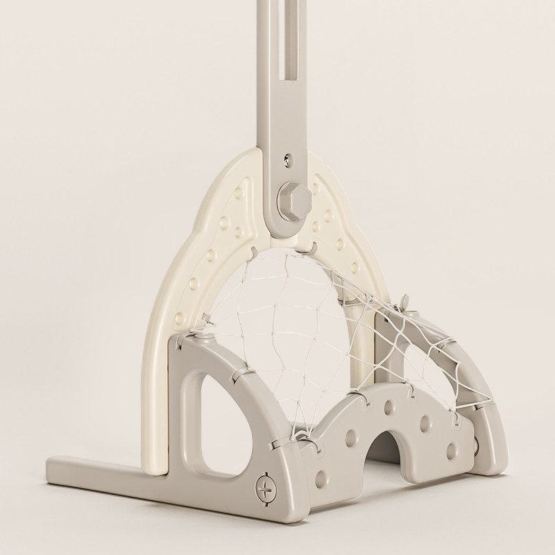 Konstrukcję można regulować w zakresie wysokości 62 - 117 cm, przy czym można zamocować w kilku różnych pozycjach. Dla większej stabilności dostępna jest podstawa z możliwością napełniania. Piłki są lekkie i dzieci dobrze sobie z nimi radzą.