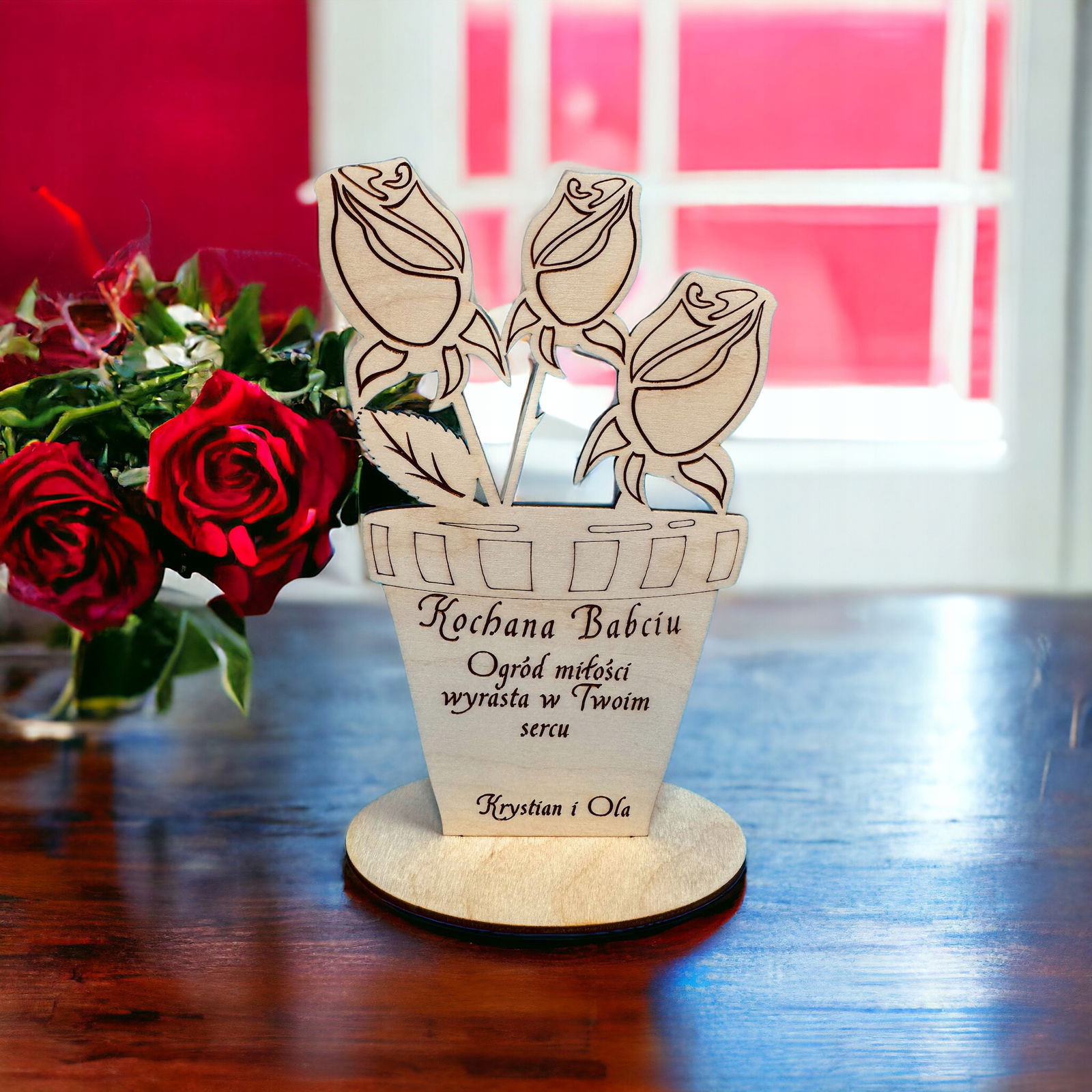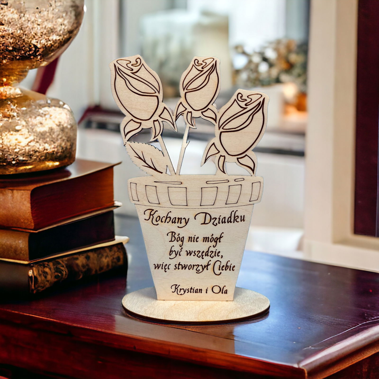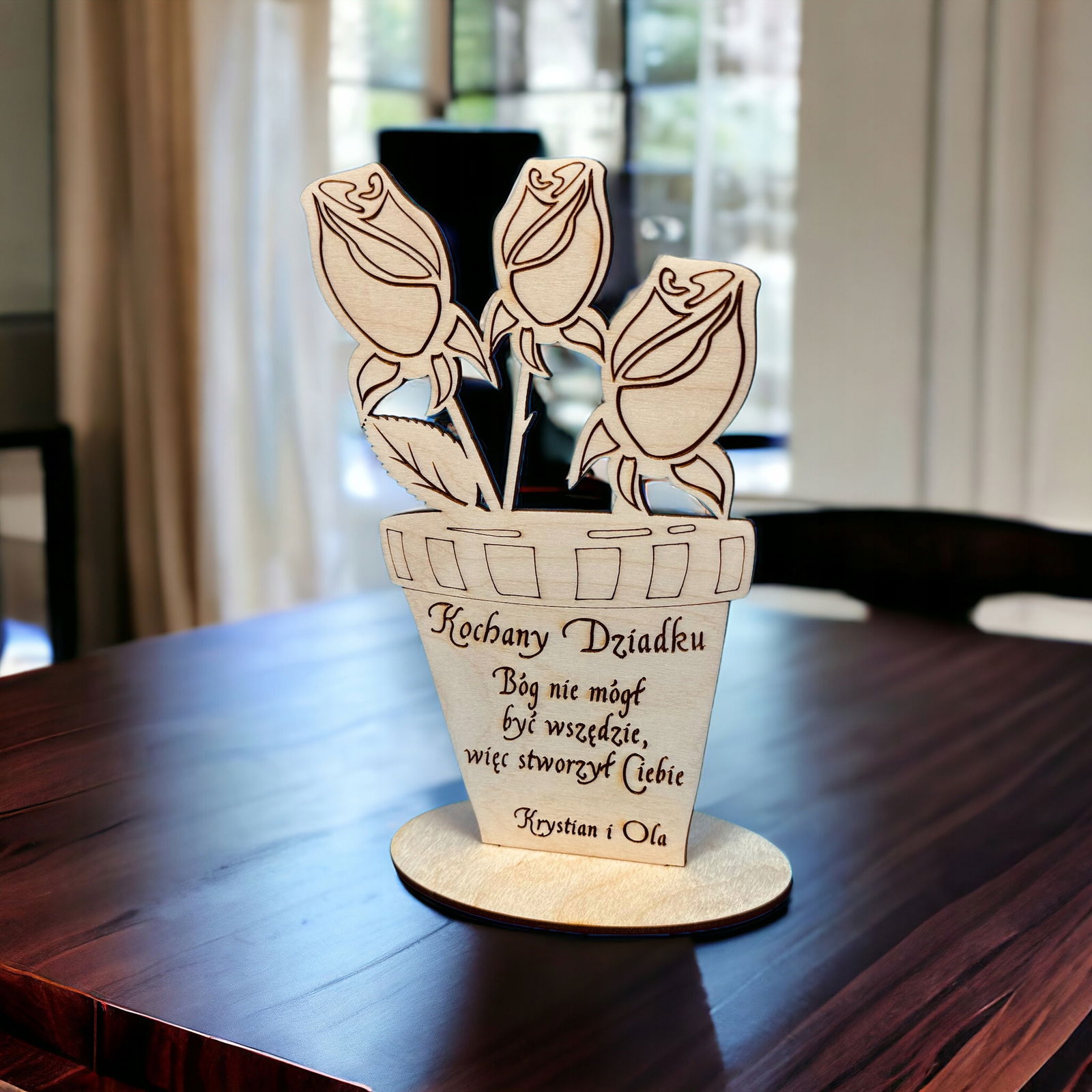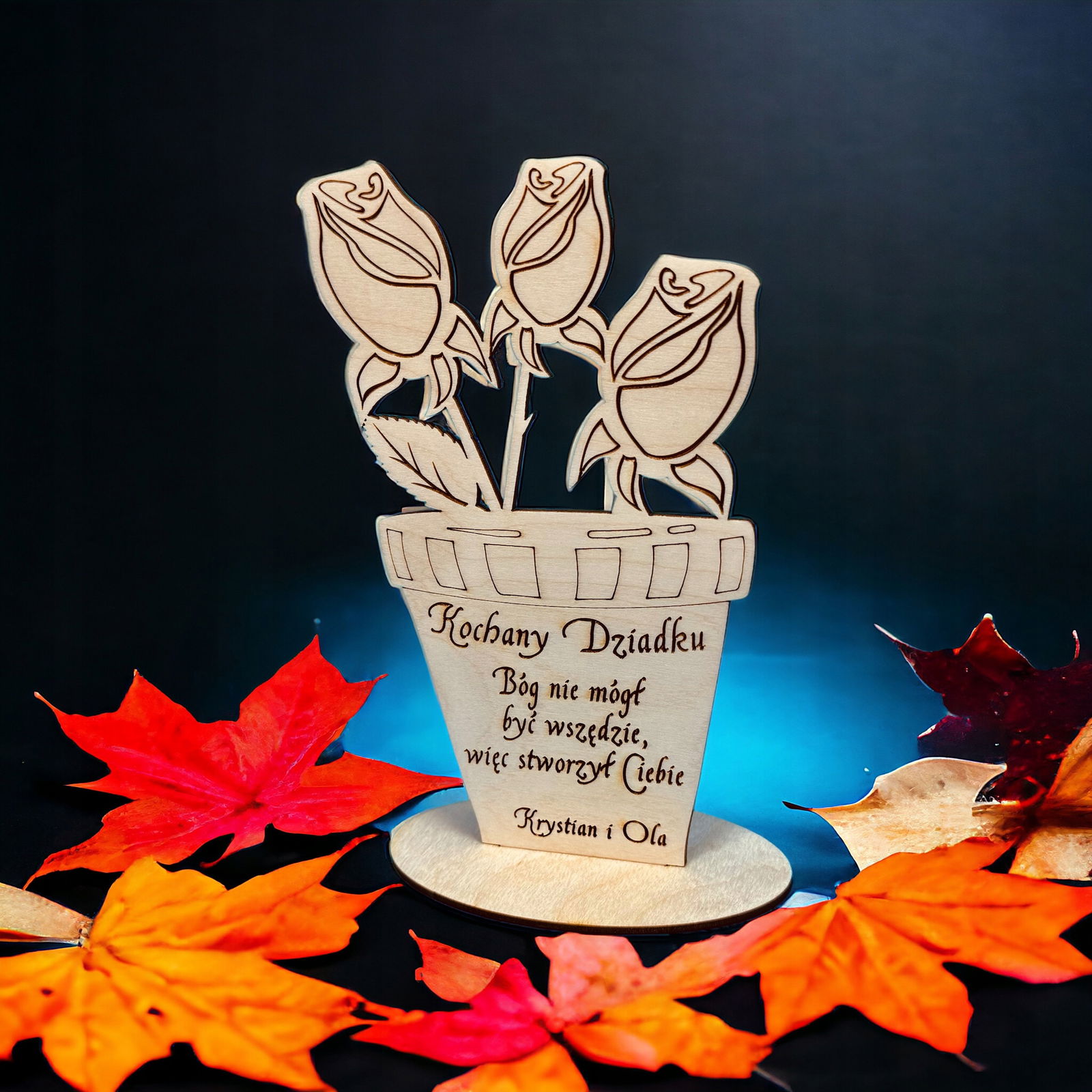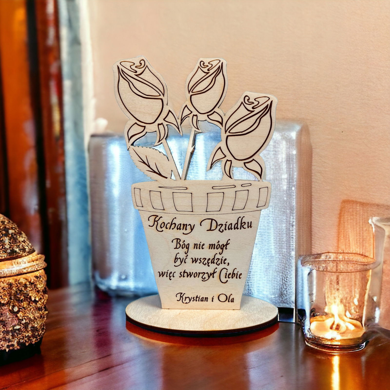 Dzień Dziadka, kwiatki - dekoracja Grawerowana Laserem, Polskie Rękodzieło