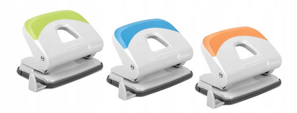 Dziurkacz jest niezbędnym wyposażeniem każdego biura i urzędu. Przyda się również do archiwizowania domowych dokumentów. Dziurkacz Easy wykonany został z tworzywa sztucznego, jest lekki i wytrzymały. Szeroka dźwignia umożliwia wygodne oparcie dłoni, co za tym idzie – wygodne dziurkowanie nawet do 20 kartek na raz! Praktyczny wskaźnik wielkości papieru ułatwi ułożenie kartek w odpowiednim miejscu, tak by wykonane otwory optymalnie pasowały do rozstawu segregatora, zaś kartki były w nim wyśrodkowane. Tacka na pozostałości papieru zapewnia zachowanie porządku w miejscu pracy. Ciekawą opcją jest możliwość podpisania swojego dziurkacza – w spodniej części zostało przewidziane miejsce na wsunięcie karteczki ze swoim imieniem. Dziurkacz przygotowany został w trzech klasycznych, eleganckich kolorach: bordowym, granatowym oraz czarnym. Dzięki minimalistycznej formie i stonowanym barwom doskonale wkomponowuje się w każde pomieszczenie. materiał: tworzywo sztuczne kolor: pomarańczowy ilość kartek: 20 pojemnik na resztki papieru możliwość podpisania dziurkacza