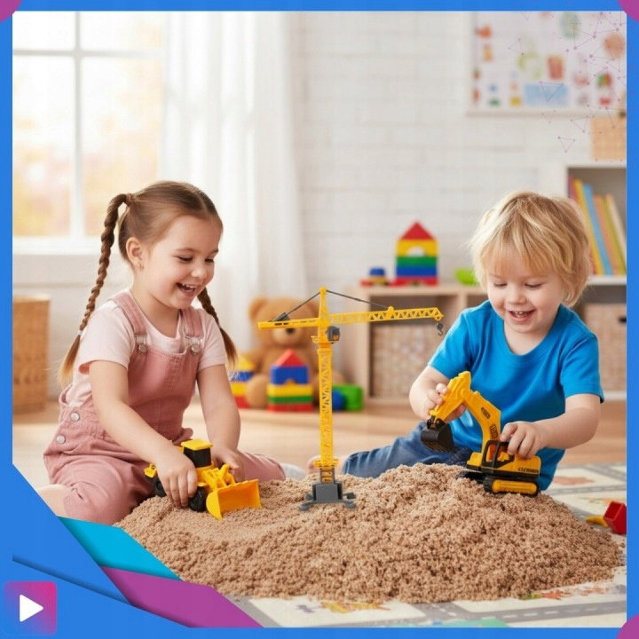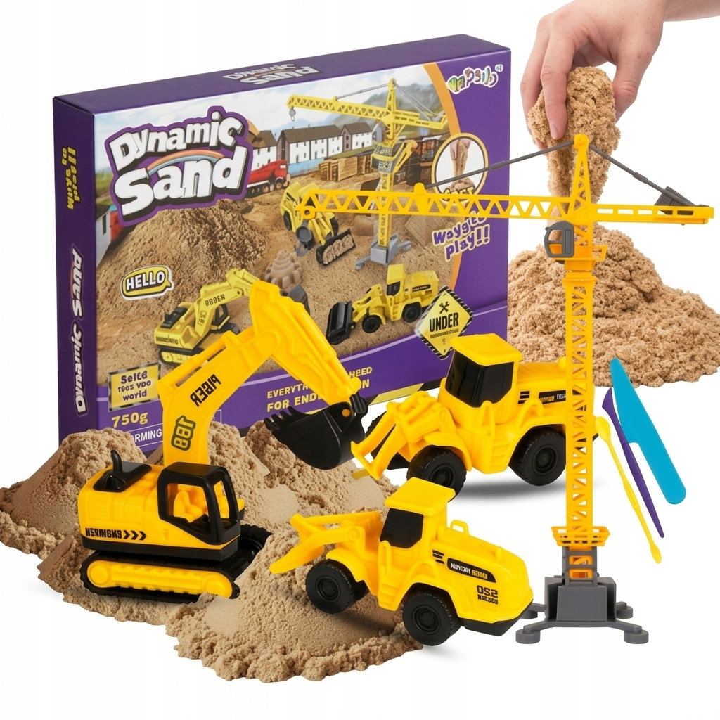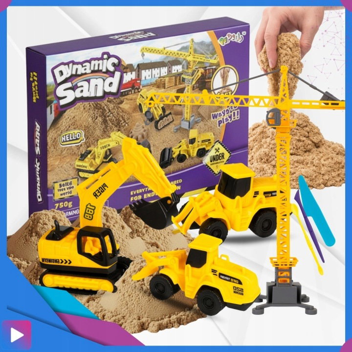 ✅ Zabawka kreatywna | ✅ 750 g piasku kinetycznego | ✅ Ruchomy dźwig i pojazdy