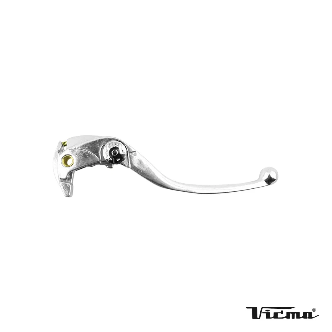 Dźwignia hamulca przedniego VICMA (V Parts) w kolorze srebrnym, zaprojektowana jako wysokiej jakości zamiennik oryginalnej części. Wykonana z trwałych materiałów, zapewnia niezawodne i precyzyjne działanie układu hamulcowego. Jej ergonomiczny kształt gwarantuje komfort użytkowania.