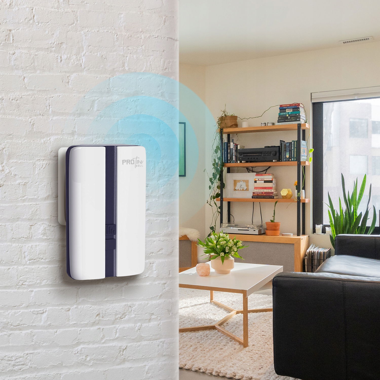 Maksymalny zasięg urządzenia w terenie otwartym to aż 150 m. Dzwonek nie zakłóca pracy innych urządzeń dlatego można go używać zarówno w domu, biurze, warsztacie jak i wielu innych miejscach!