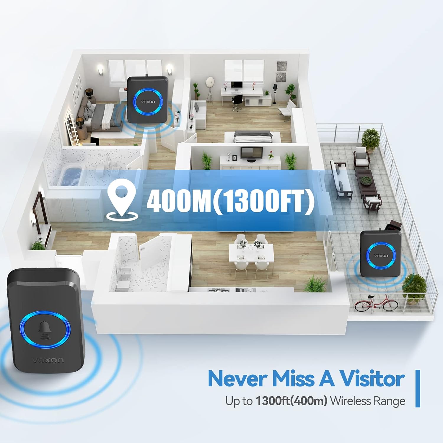 Dzwonek bezprzewodowy VOXON z dwoma odbiornikami - 400m zasięgu, Wielofunkcyjny