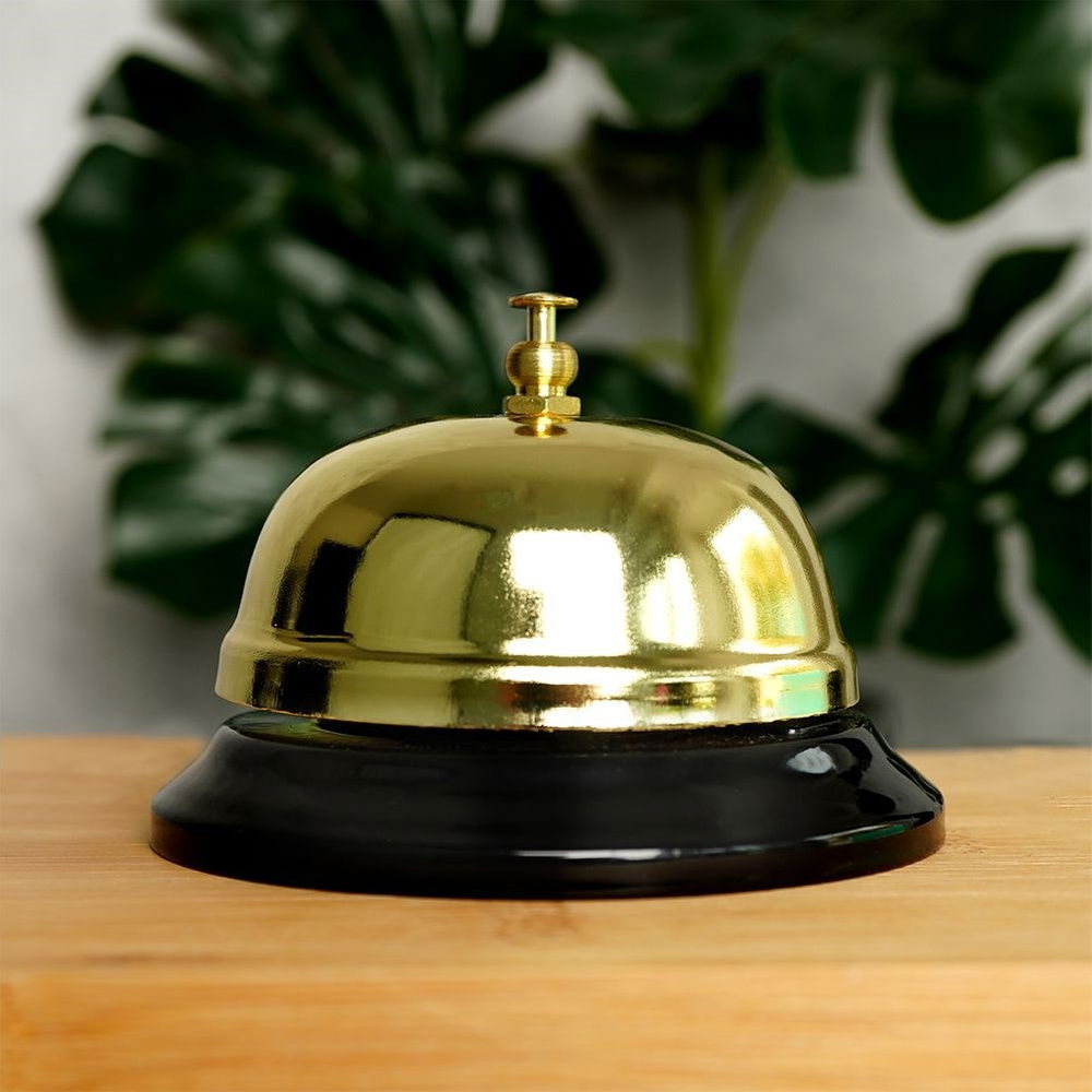 Dzwonek Recepcyjny Stołowy Barowy Barmański Ręczny Metalowy Złoty