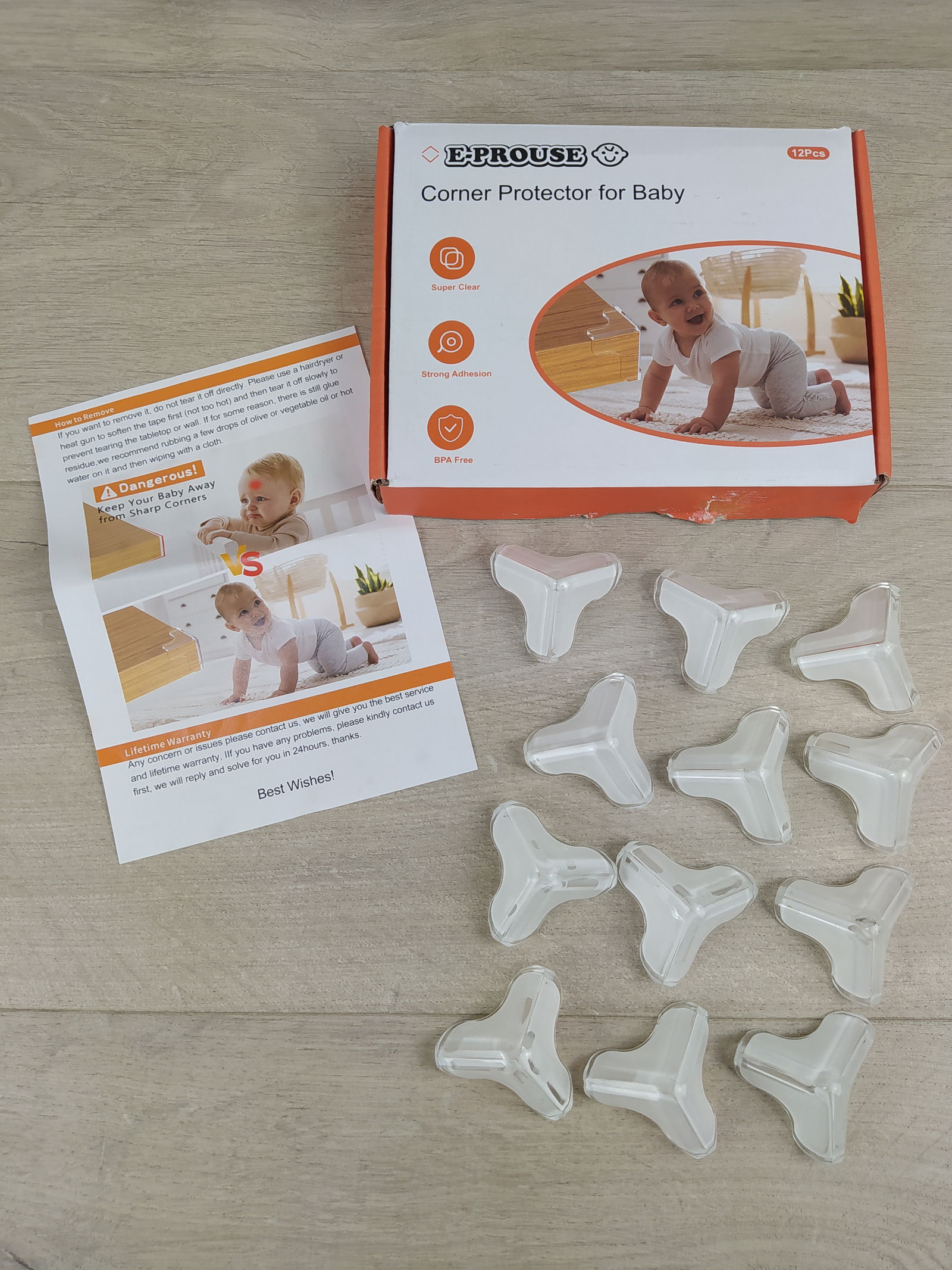 E-PROUSE T-Shape – zestaw 12 przezroczystych narożników ochronnych Narożniki ochronne E-PROUSE zostały zaprojektowane z myślą o bezpieczeństwie dzieci w domowej przestrzeni. Innowacyjny kształt T-Shape zapewnia 3-stronne pokrycie ostrych krawędzi mebli, chroniąc przed bolesnymi uderzeniami i otarciami. Każdy element wyposażony jest w fabrycznie nałożony, mocny klej o grubości 1 mm, który gwarantuje trwałe mocowanie bez konieczności dodatkowego montażu.
