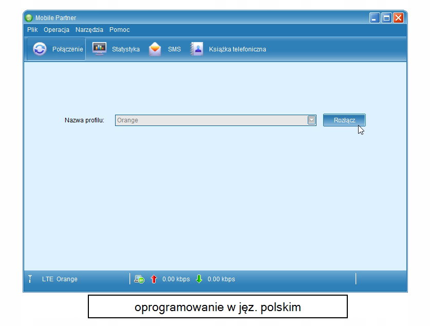 Program do obsługi modemu jest w jęz. polskim. Instaluje się on automatycznie po podłączeniu modemu do komputera. Nie potrzeba żadnej płyty ze sterownikami.
