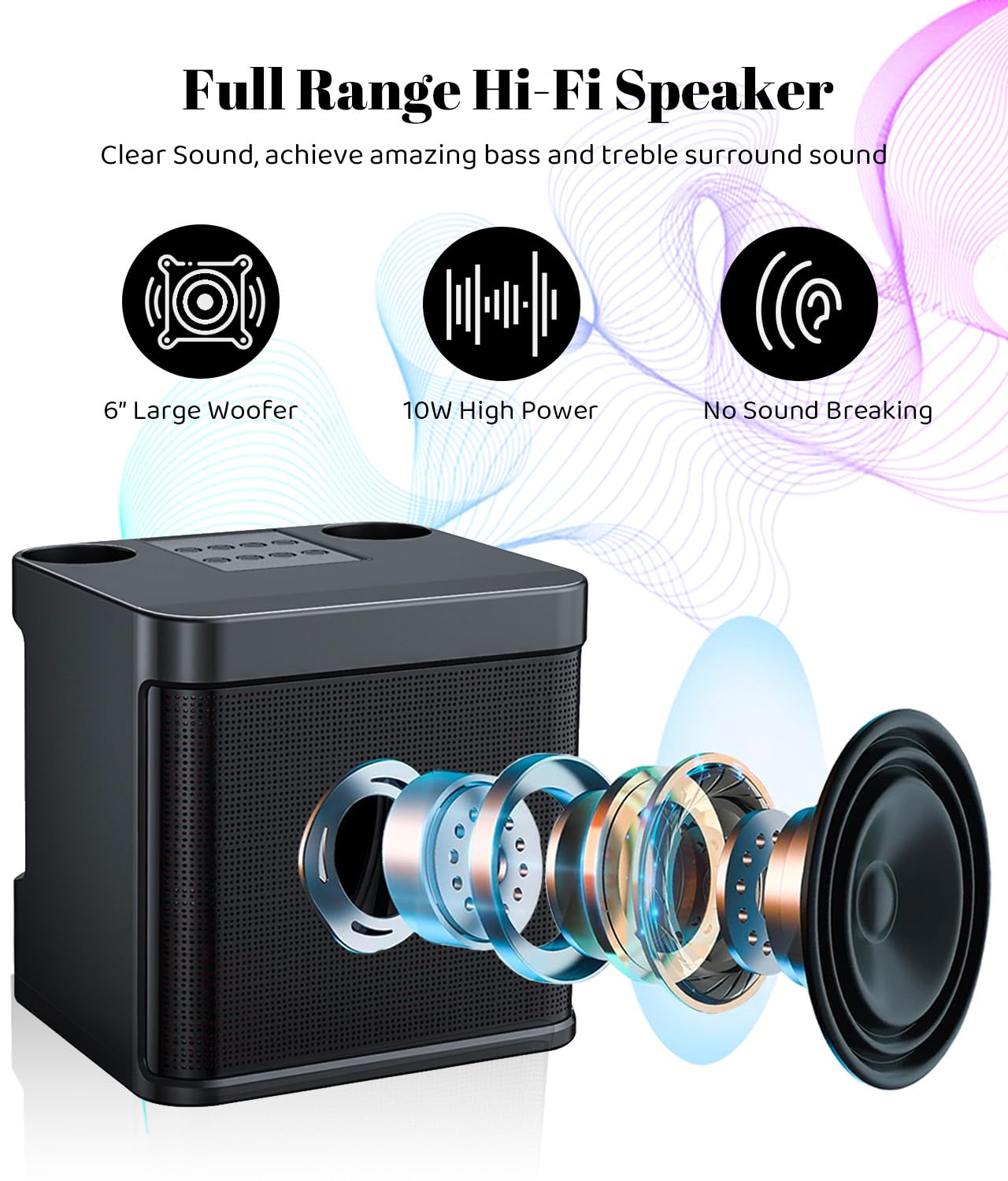 - Doskonała maszyna do karaoke Wszystko w jednym: Przenośny ekspres do karaoke jest wyposażony w pełnozakresowe głośniki premium 10 W, wyraźne wysokie tony, dokładne średnie i głębokie basy, które zapewniają bogate, żywe i realistyczne dźwięki. Realizuj wszechstronny dźwięk przestrzenny, zapewniając szokujące efekty audiowizualne. Idealny na imprezy, rodzinne karaoke, wesela, spotkania na świeżym powietrzu / zajęcia w pomieszczeniach. Idealny prezent świąteczny dla dzieci i dorosłych.