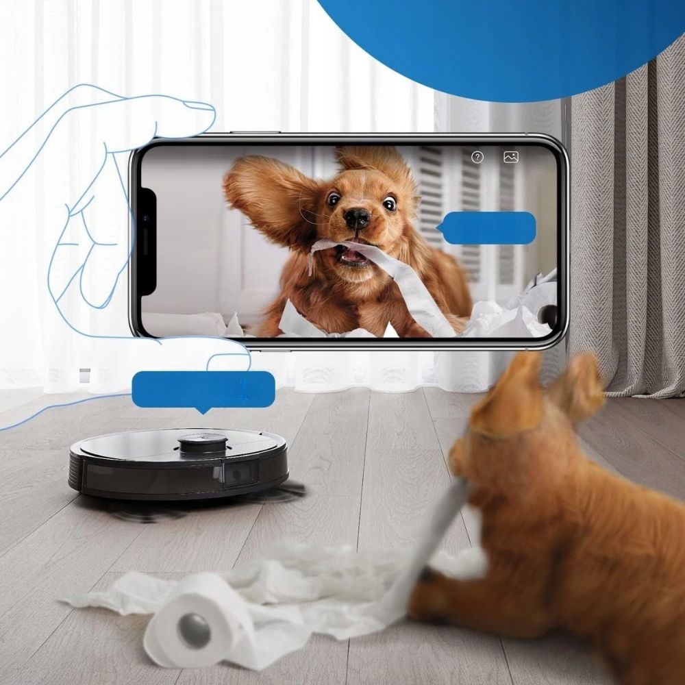 Dzięki kamerze 960p i aplikacji ECOVACS Home możesz podglądać swój dom z każdego miejsca. Dodatkowo dwukierunkowa komunikacja audio pozwala rozmawiać z domownikami lub zwierzakami – idealne rozwiązanie dla rodzin z dziećmi.