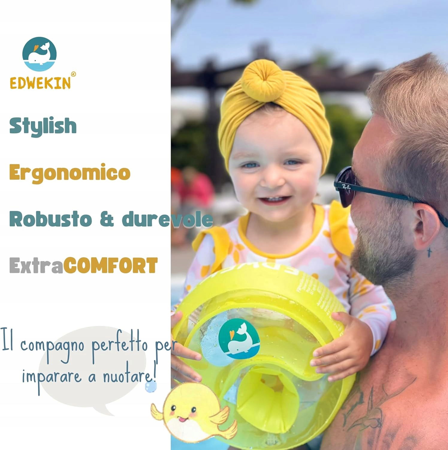 Wiodąca niemiecka marka: EDWEKIN, znany jako lider innowacji, opracowuje wysokiej jakości pomoce pływackie klasy premium w ścisłej współpracy z inżynierami i artystami, stale ulepszane dzięki ciągłej opinii rodziców.