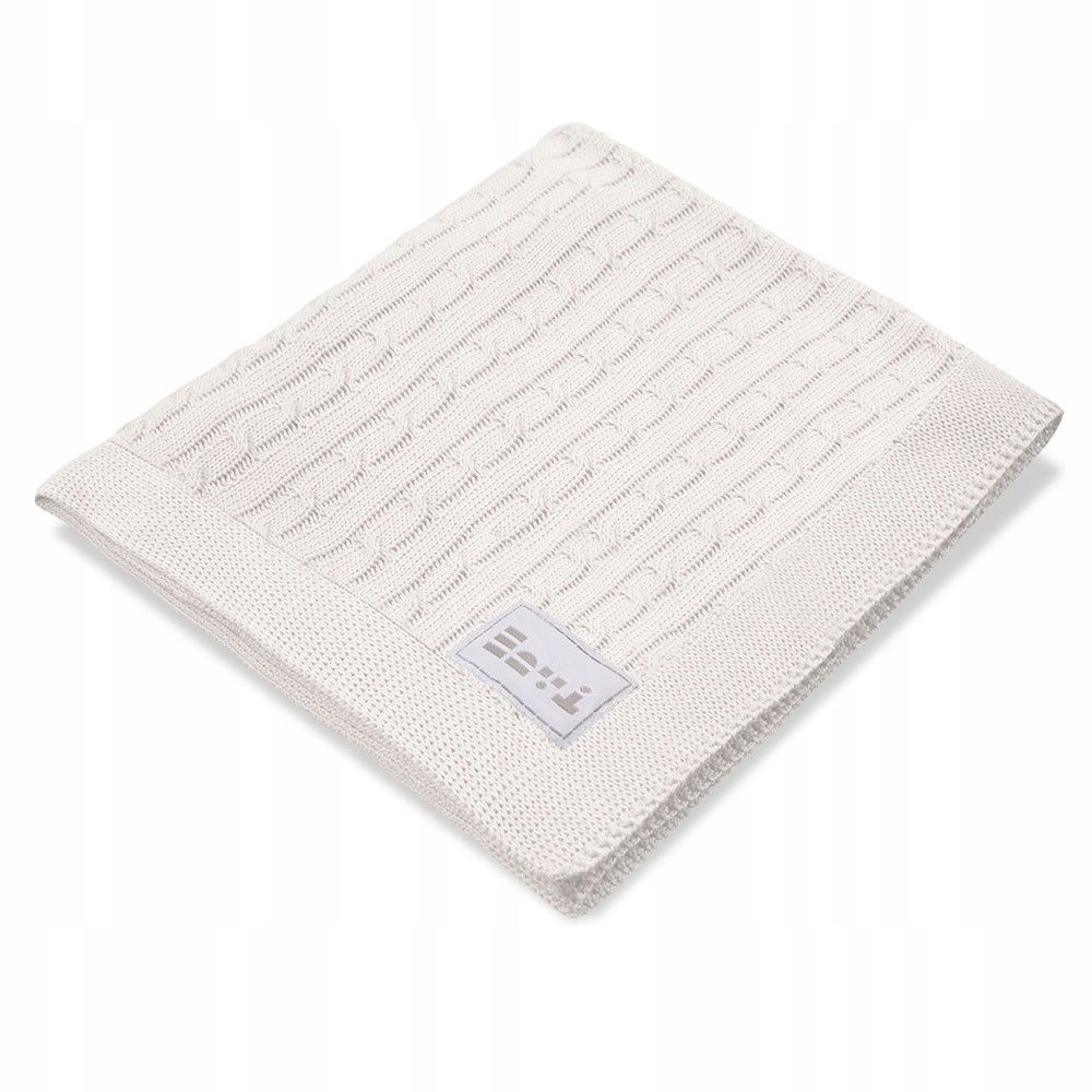 Kocyk dziecięcy dziany bawełniany 100x75 cm wykonany z miękkiej i przyjemnej w dotyku bawełny. Kocyk posiada modny wzór w warkocz. Idealny na każdą porę roku. W rogu kocyka znajduje się naszywka żakardowa z logo marki. Kocyki bambusowe są niezastąpionym elementem w wyprawce dla noworodka. Są przyjemne w dotyku i bardzo milutkie. Dodatkowo antyalergiczne, więc sprawdzą się dla najbardziej wymagającej skóry dziecka.