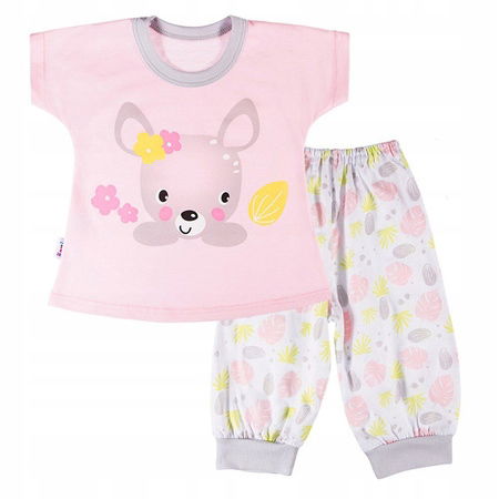 Piżamka letnia dziewczęca z kolekcji "Family" uszyta z miękkiej i przyjemnej w dotyku dzianiny w trzech wariantach kolorystycznych przełamanych drukami, wykonanymi farbami ekologicznymi. Bluzeczka przy szyjce i rękawkach zakończona miękkimi lamówkami. Spodenki posiadają w pasie gumę nie uwierającą brzuszka dziecka. Nogawki również zakończone ściągaczem. Kolorowe nadruki na przodzie piżamki wykonane są farbami bezpiecznymi dla dzieci. Wyprodukowana w Polsce, posiada certyfikat "Bezpieczny dla dziecka". 100% bawełna