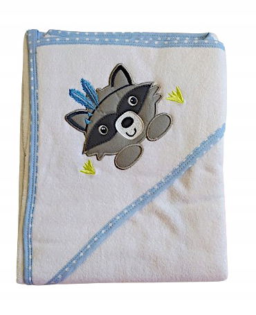 Okrycie uszyte z miękkiej i przyjemnej w dotyku jednostronnej frotty w jedenastu wersjach kolorystycznych. Na rogu znajdziemy duży haft wesołego zwierzątka. Wykończone miękką lamówką. Wyprodukowana w Polsce, posiada certyfikat "Bezpieczny dla dziecka". 80% bawełna, 20% poliester, wielkość: 80x80 cm