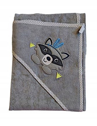 Okrycie uszyte z miękkiej i przyjemnej w dotyku dwustronnej frotty w jedenastu wersjach kolorystycznych. Na rogu znajdziemy duży haft wesołego zwierzątka. Wykończone miękką lamówką. Wyprodukowana w Polsce, posiada certyfikat "Bezpieczny dla dziecka". 80% bawełna, 20% poliester, wielkość: 80x80 cm