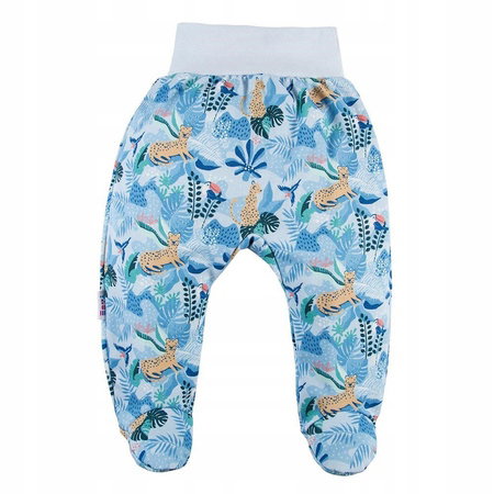 Półśpioch niemowlęcy w unikatowy wzór z kolekcji "Nature" uszyty z miękkiej i przyjemnej w dotyku dzianiny bawełnianej. W pasie półśpiocha wszyty bez uciskowy ściągacz, który nie uwiera brzuszka dziecka. Mamy chętnie wybierają spodenki ze stópkami dla swoich maluszków. Plusem są zakryte stopki maluszka, które będą ochraniane przed chłodem.