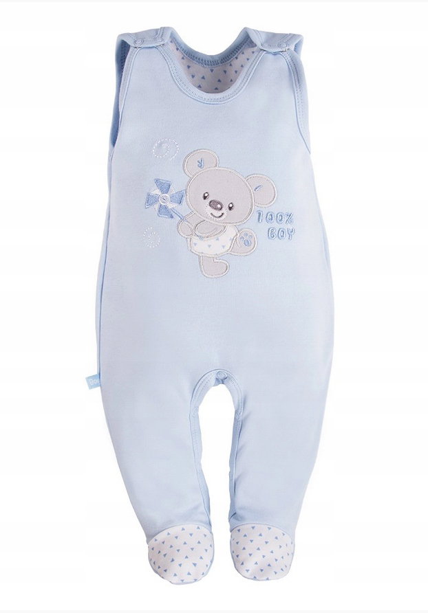 Krój umożliwia całkowite rozpięcie, przez co ubranko jest funkcjonalne i wygodne. Śpioch niemowlęcy wykończony jest miękką lamówką.
